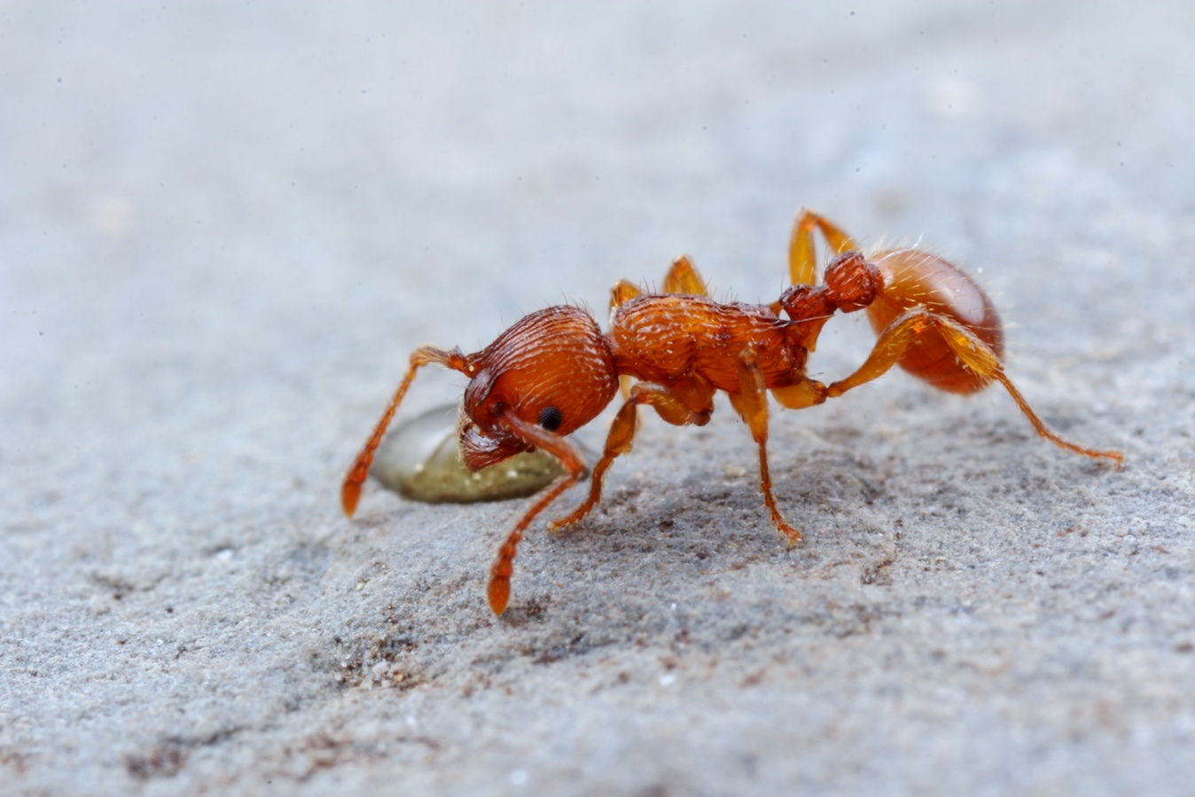 - Die Stirnleisten sind in der Mitte deutlich zusammenlaufend. Gut ist die Form des Petiolus zu sehen.