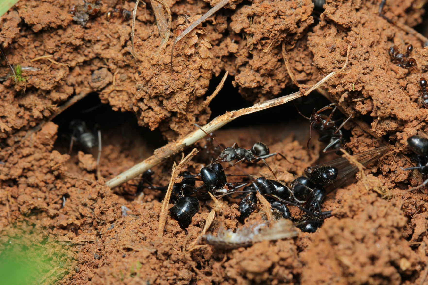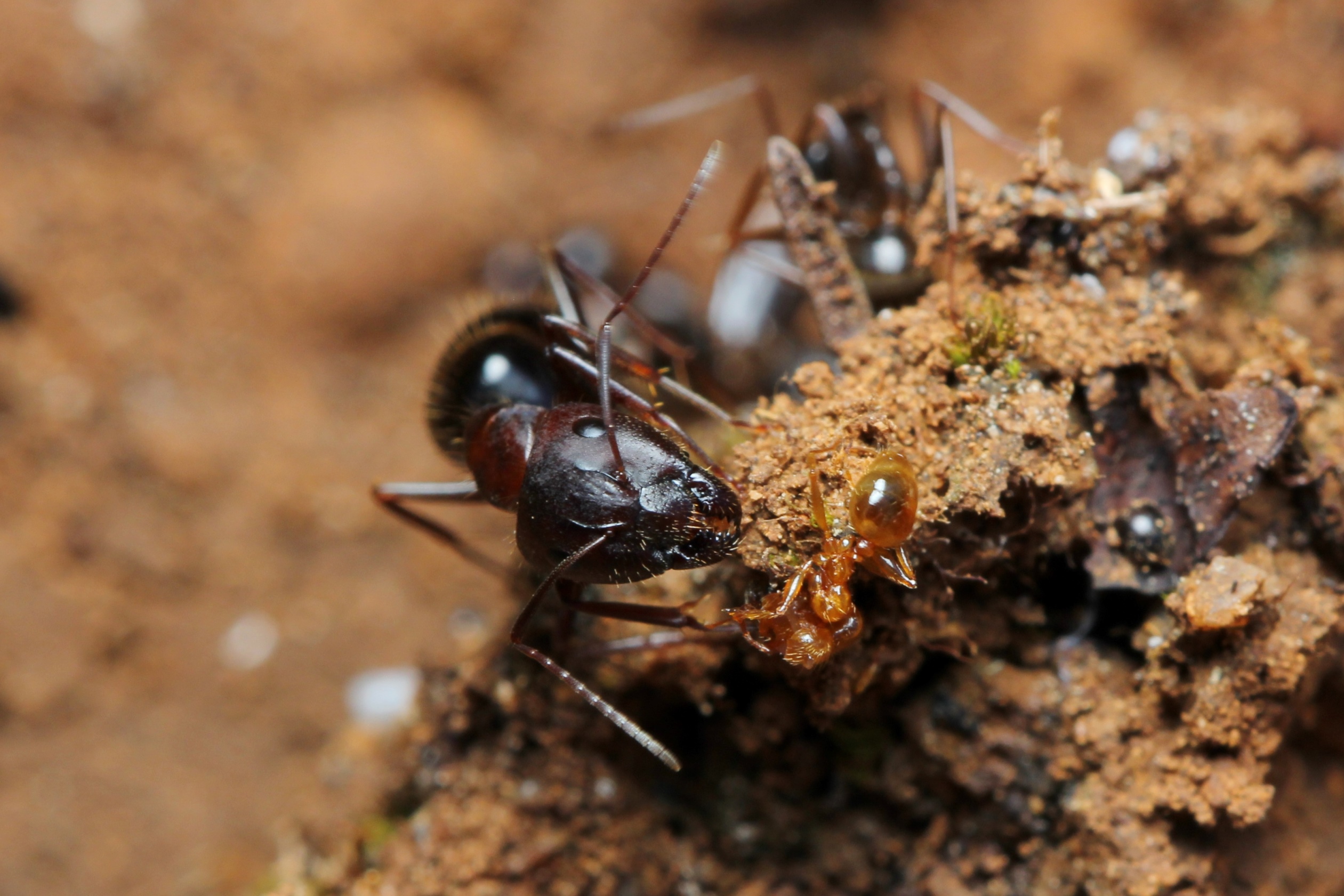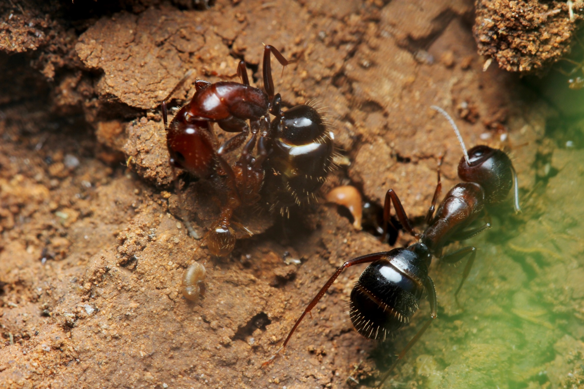 Bei der Nestöffnung kamen unabsichtlich Pheidole pallidula ins "Gehege".