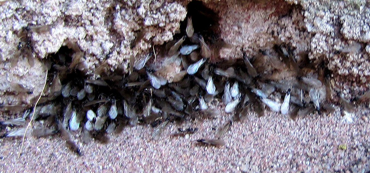 Einer der beiden Türme war zu besteigen, und oben auf der Plattform entdeckten wir eine Ansammlung geflügelter Ameisen, in einer schattigen Spalte unten an der Umfassungsmauer.