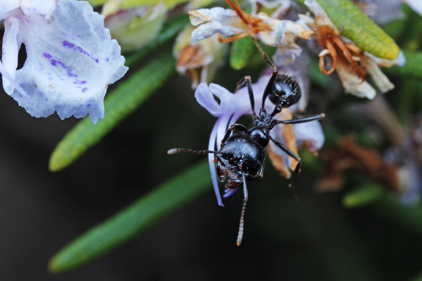Arbeiterinnen klettern auch auf Pflanzen um Blütenteile zu begutachten