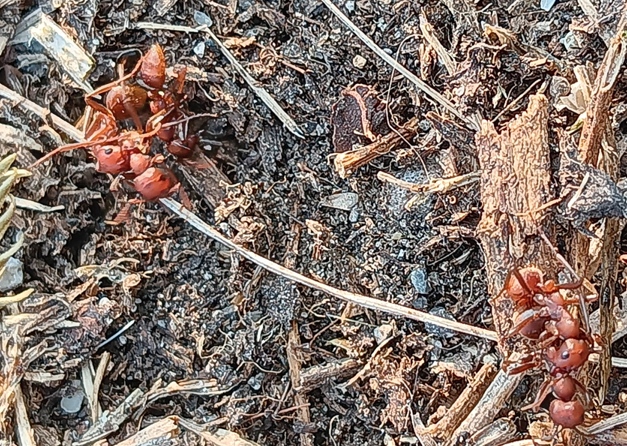 Das Auswildern der Völker ist generell problematisch, denn in der Natur ist so ziemlich jeder geeignete Standort belegt. Problematisch für die ausgewilderten Völker sind v.a. Lasius, Tetramorium und Solenopsis Nester. Und die ausgesetzten Nester werden auch mehrfach umziehen, bis sie einen für sich geeigneten Standort gefunden haben. Das hat schon mehrfach zu Mißerfolgen, selbst bei betreuten Nestern, im Garten vor der Haustür geführt. So hatte ich schon Nester ausgesetzt, die zwei Jahre lang Raubzüge machten und dann gingen sie ein. Das beobachte ich übrigens auch bei natürlich vorkommenden Nestern, dass diese oft nur kurzlebig sind bzw. nach wenigen Jahren spurlos verschwinden. Das ist hier in Wien leicht zu beobachten, da Naster oft eingeschränkte Lebensräume, aufgrund umliegender Strassen, Häusern, Grünstreifen, etc., haben. Die Nestdichte ist auch oft so hoch, dass es zu intraspezifischen Kämpfen kommt. So etwas konnte ich auch schon mehrfach beobachten, erst kürzlich wieder am 11.07.23 am Donaukanal Wien; leider habe ich hier den Angriffszeitpunkt verpasst. Die Nester waren ca. 30 Meter voneinander entfernt. Ich hoffe, dass zumindest eines der Nester überleben wird.
