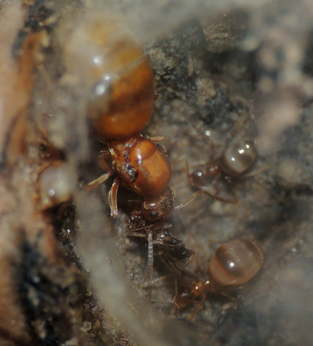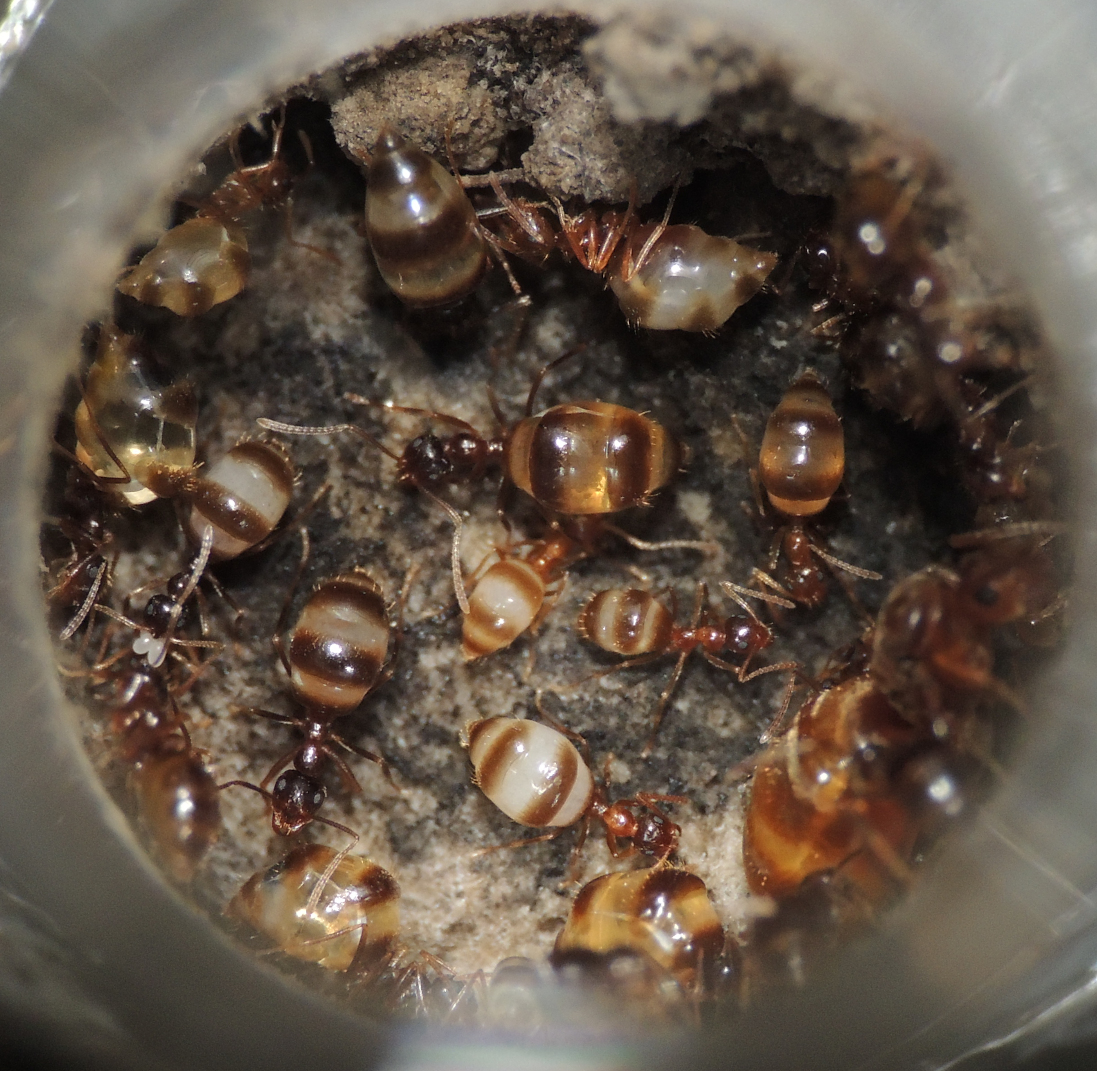 Update zu der von mir im oberen Beitrag gehaltenen Kolonie: Noch vor der Winterruhe wurden mehrere Gynen von Arbeiterinnen getötet, drei blieben über die Winterruhe am Lenben. Nach der Winterruhe wurden zwei weitere Gynen von den Arbeiterinnen getötet. Viele Arbeiterinnen starben vor und während der Winterruhe. Im April überführte ich die kleine Kolonie in ein frisches Reagenzglas, da der Wassertank leer war.