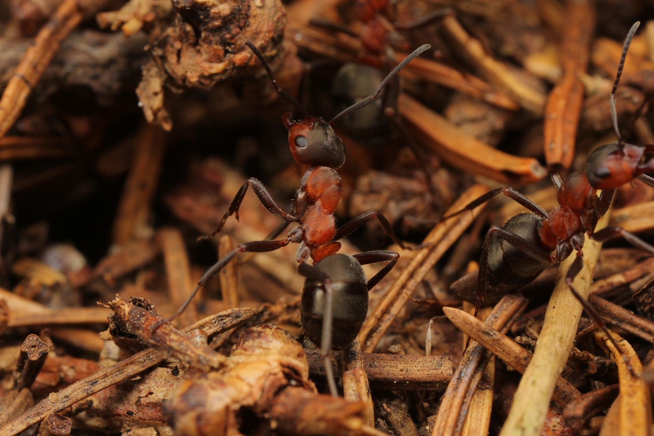 Formica lugubris, die "Starkbeborstete Gebirgswaldameise" kommt bei uns zwischen 1000 m und 2400 m vor. Die Art gründet sozialparasitisch vor allem bei Formica lemani. "Evolutiver Wettkampf mit F. lemani führte zu aggressivem Verhalten gegen F. lugubris-Weibchen" (H. Wagner: Die Ameisen Kärntens, S. 304). Das heißt, dass die Gynen beim Versuch der Nestgründung nicht immer erfolgreich sind. Wie praktisch alle Formica s. str. gilt F. lugubris als territorial, hin und wieder kommt es im freien Gelände zu Kontakten mit Coptoformica sp., die im Körperbau durchwegs kleiner, aber wegen ihrer hohen Beißkraft gefährlich sind.