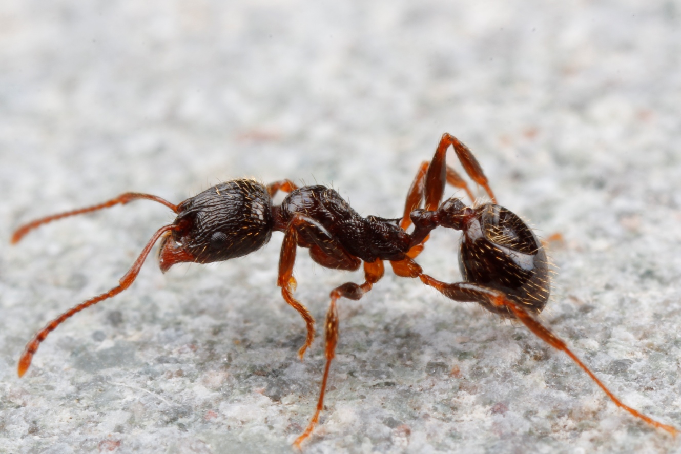 Aphaenogaster sp. aus Nova Vas/Istrien. In Kroatien kommen mehrere Aphaenogaster-Arten vor [Bracko G. (2006): Review of the ant fauna (Hymenoptera: Formicidae) of Croatia]; auch die bei uns heimische A. subterranea, die man auf den ersten Blick mit einer Myrmica-Art verwechseln könnte. Aber hier handelt es sich um eine fast schwarz gefärbte Art. Ich dachte zuerst an A. gibbosa od. A. italica, die kommen aber lt. obiger Checkliste in Istrien/Kroatien nicht vor. Am ehesten handelt es sich um Aphaenogaster cf. epirotes, die für Istrien mehrfach nachgewiesen ist, ihr Hauptverbreitungsgebiet aber offensichtlich in Griechenland hat. Fotos: Roman Borovsky