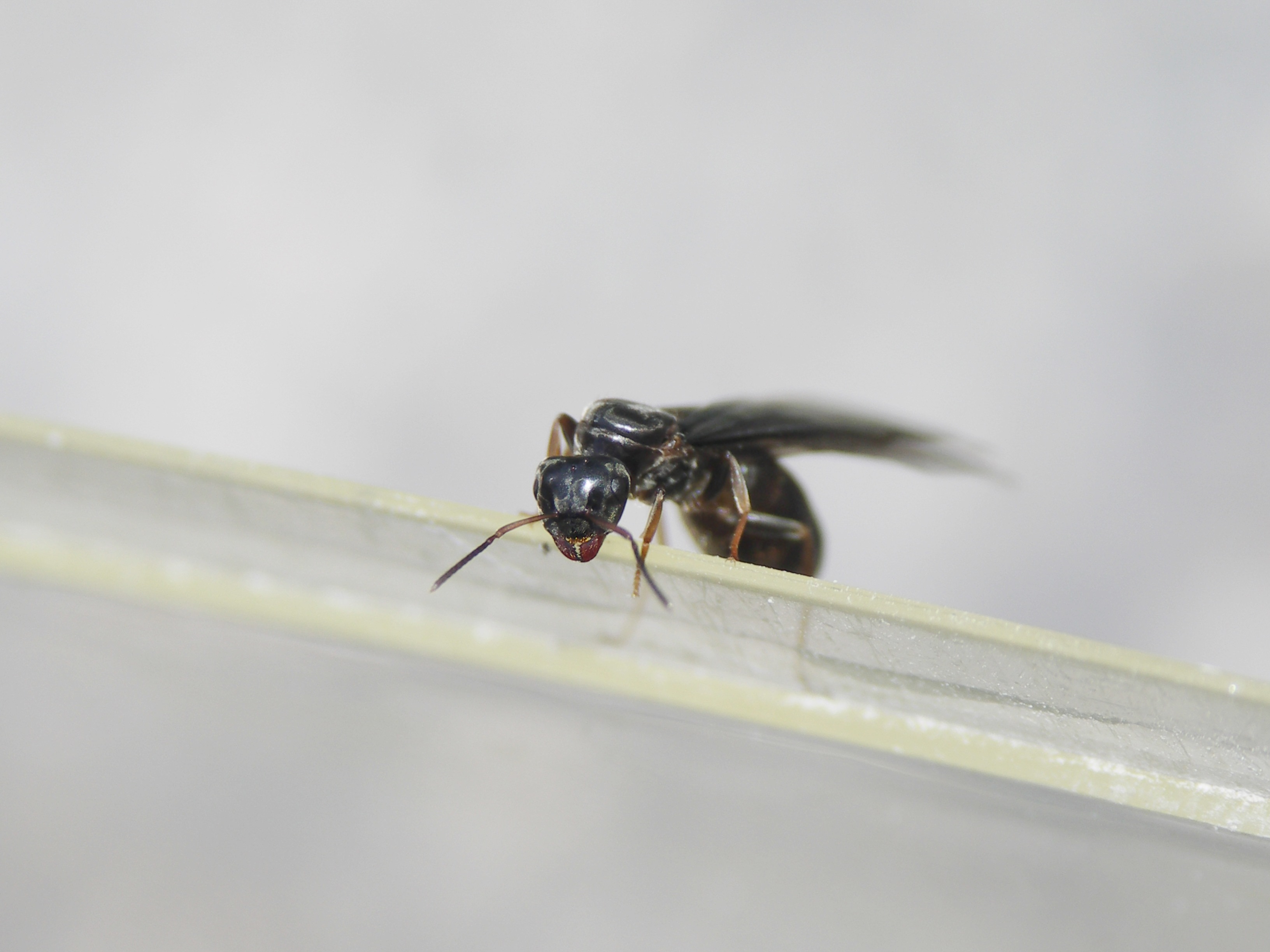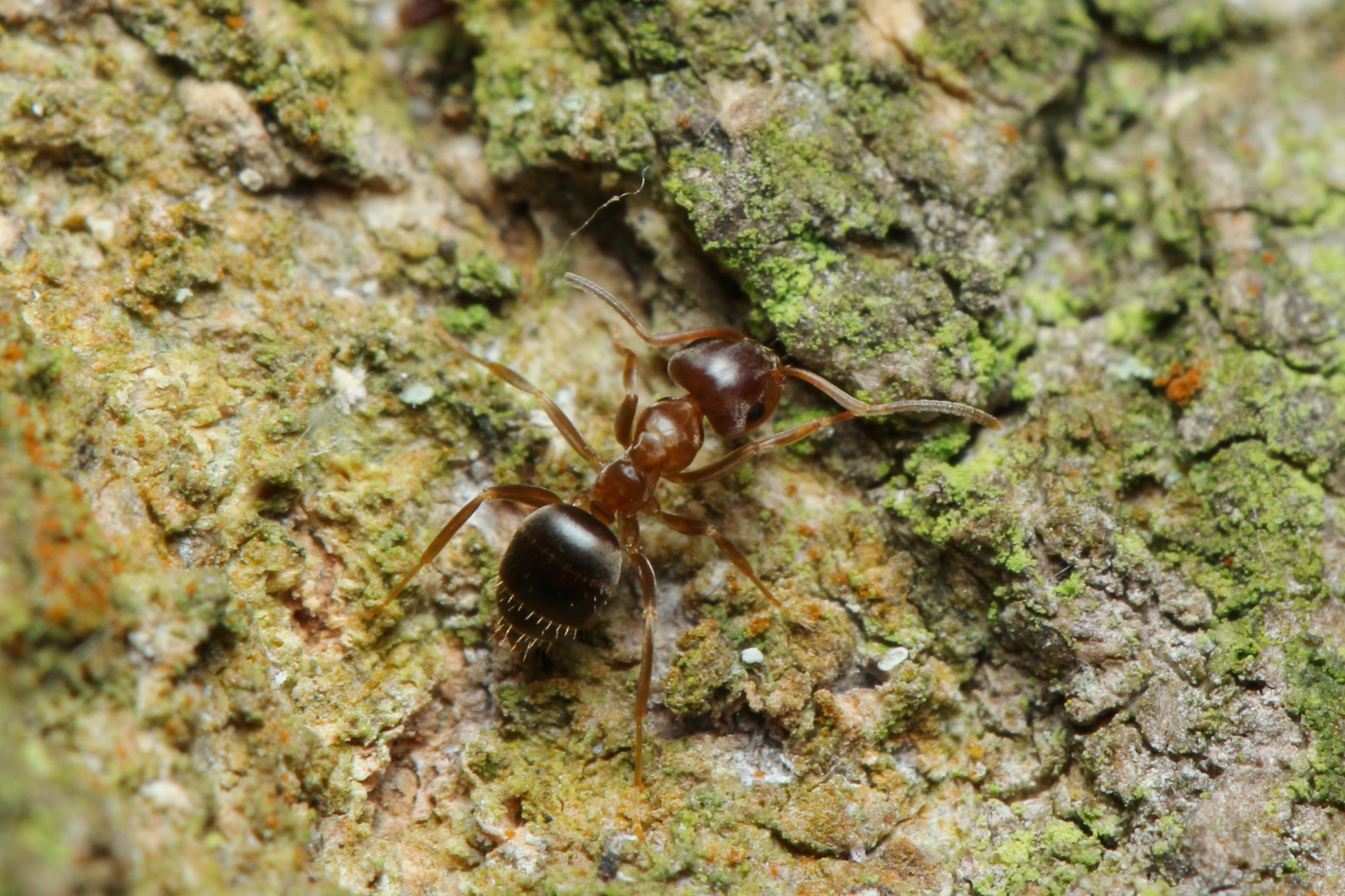 2. Färbung: Ebenfalls zweifärbig wie L. emarginatus, der Kopf ist bronzefarben-braun, das Mesosoma gelblich/schmutzig gelblich und die Gaster dunkel gefärbt.