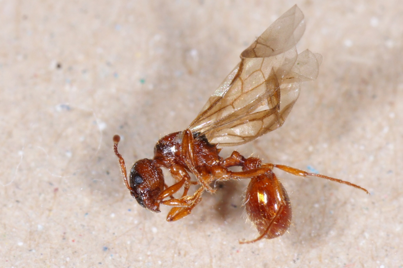 Die Merkmale sind recht gut zu sehen: Die Scapi vom Ansatz weg leicht gebogen u. zum Ende hin breiter werdend; die kurzen Propodealdornen u. der Petiolus mit schmaler Kuppe, die kontinuierlich nach hinten abfällt