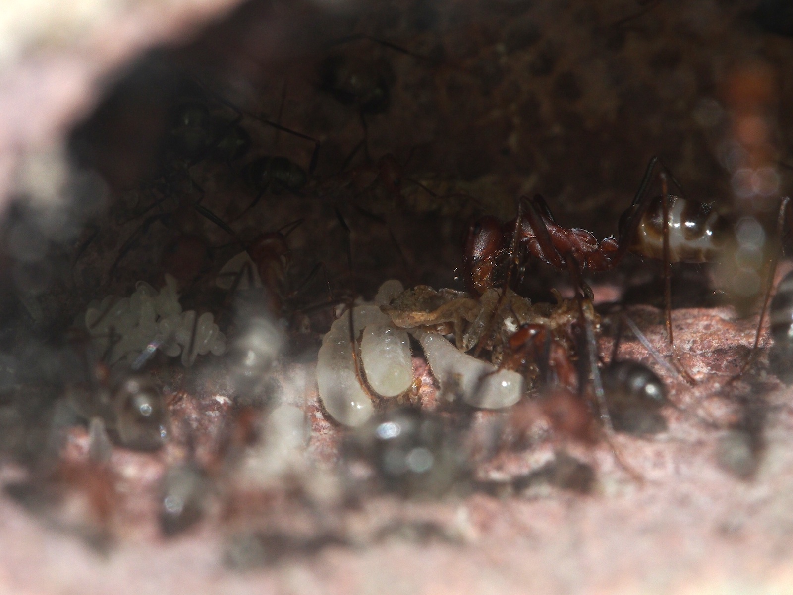 ich bin frisch aus dem Urlaub wieder in D. und habe mir 2 Königinnen dieser Art mitgebracht. Seitdem ich weiß welche Art es ist lese ich sehr viel und hab rausgefunden, daß die Gründung sehr heikel ist. Sie gründen wohl ungern in RG also hab ich ein behelfsmaessiges Formi gebaut mit einem Y tong mit einer Kammer, leicht befeuchtet und beheitzt. Seit gestern sitzt sie nun in der Box aber traut sich nicht aus dem RG.