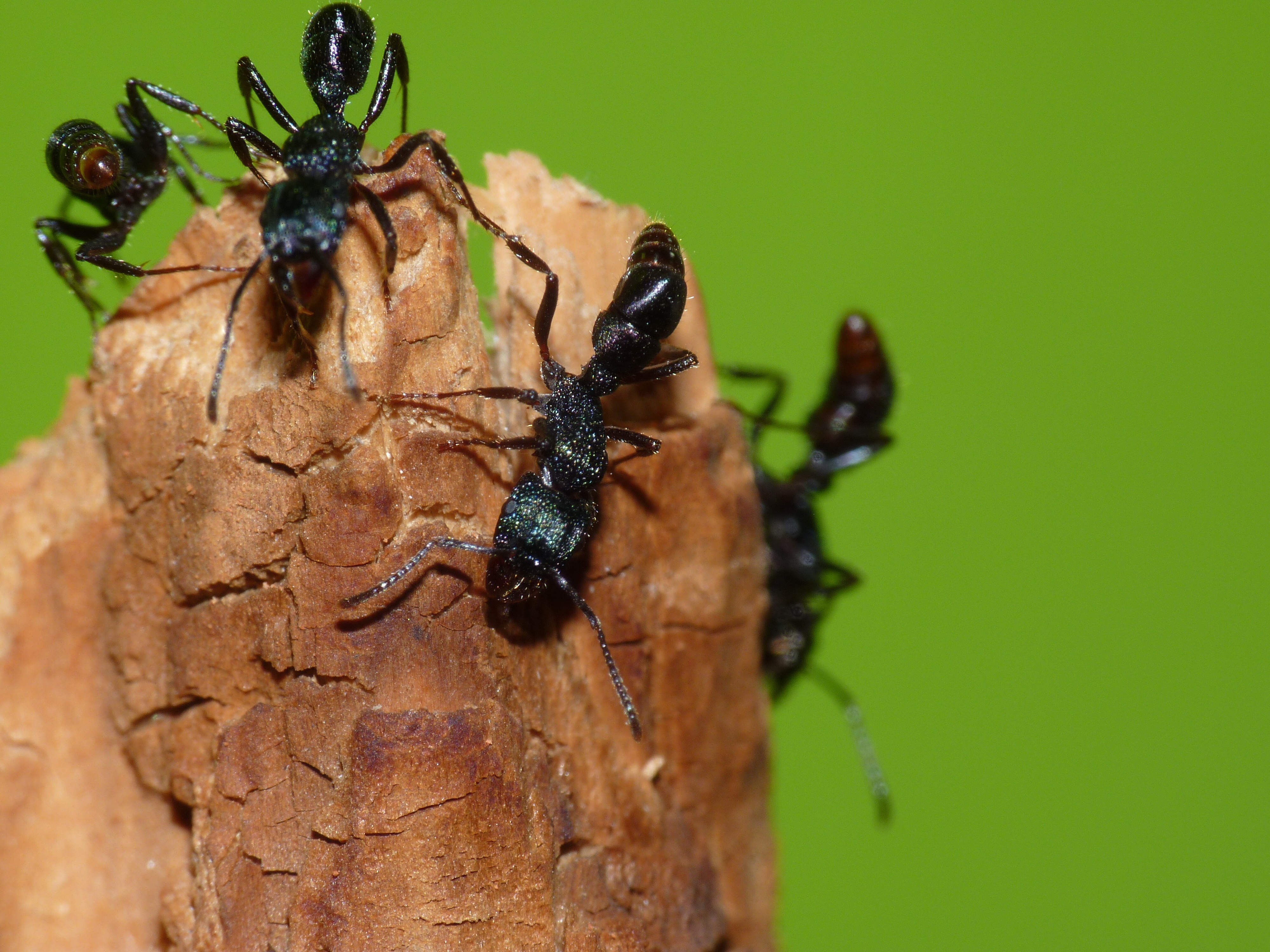 Hier ein paar außergewöhnliche Fotos einiger Rhytidoponera metallica Arbeiterinnen beim Locksterzeln.