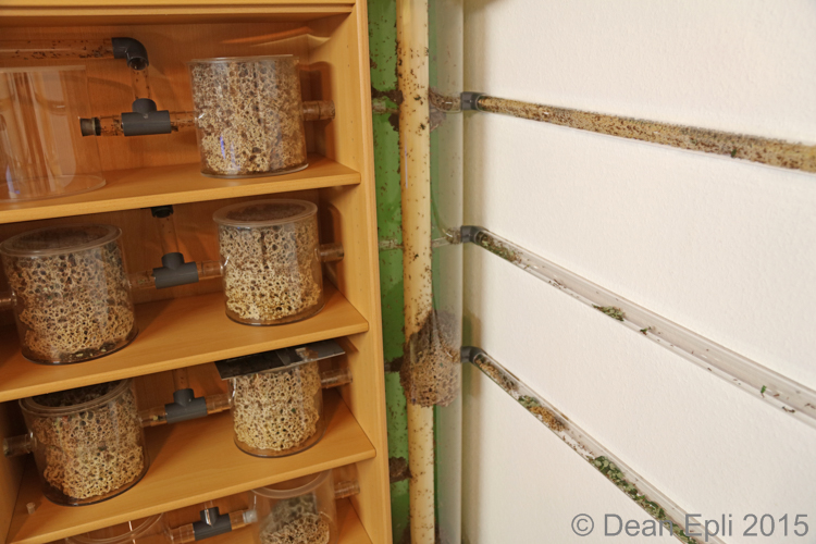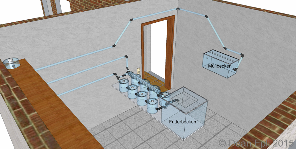 Die unteren beiden Röhren führen zum Futterteil der Anlage, der neun Becken umfasst: