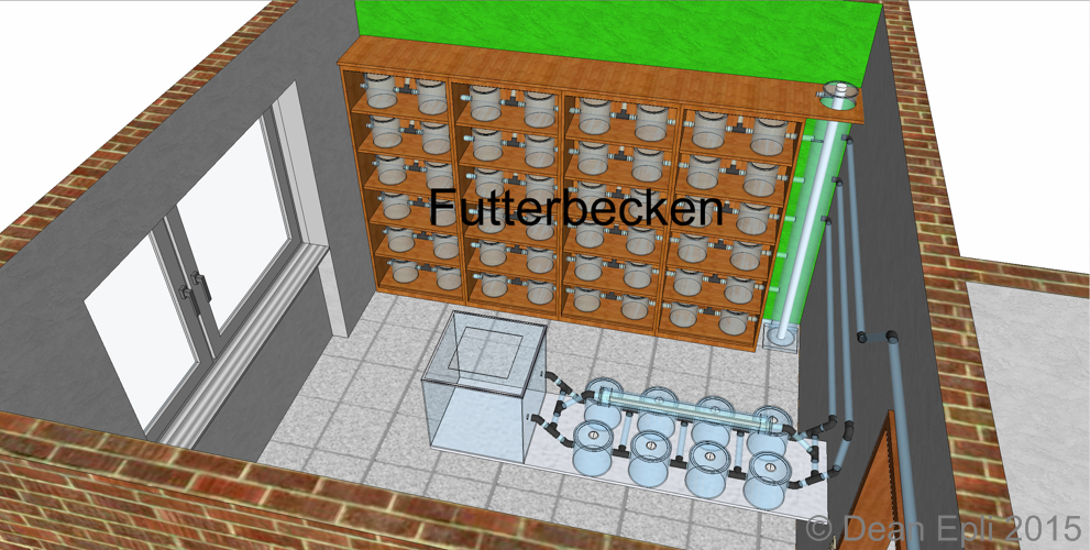 Ein größeres Becken (50x50x50cm), um das Füttern einfach zu gestalten: