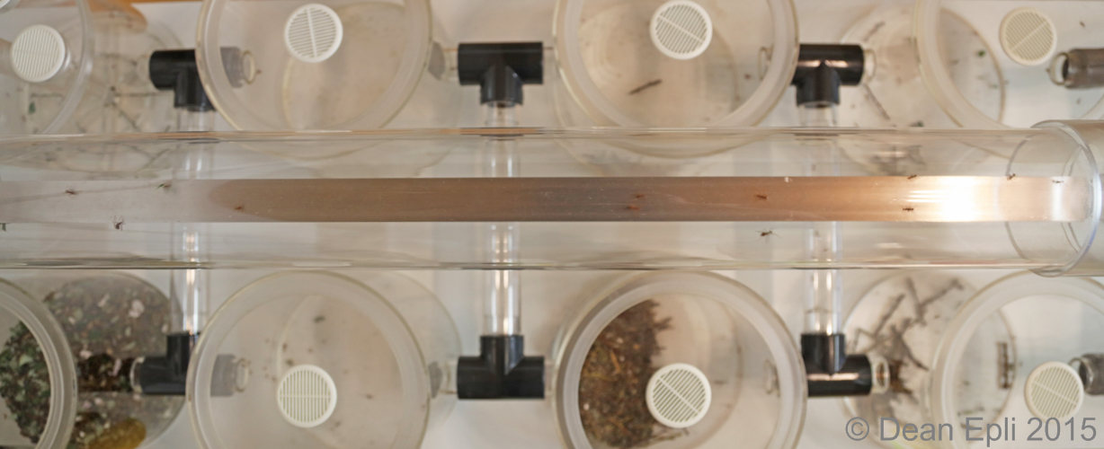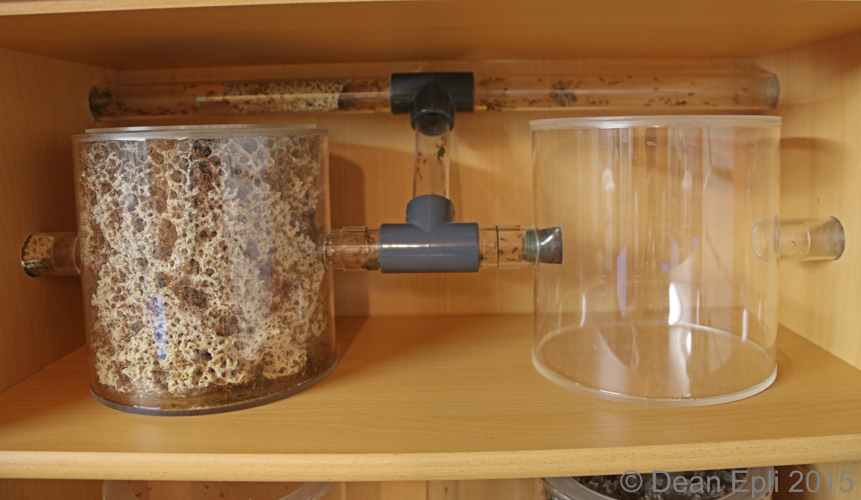 Entsprechend handelt es sich nicht um ein Formicarium, sondern um 58 Formicarien, aufgeteilt in Nestteil, Futterteil und Abfallbecken mit vielen Meter Laufweg dazwischen.