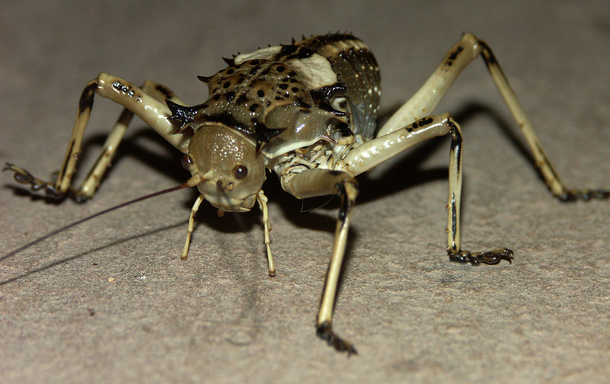 Eine „Armoured bush cricket, evtl. Katydide, jedenfalls Langfühlerschrecke. Trotz aller Mühe fand ich keinen überzeugenden Namen für dieses Wesen.