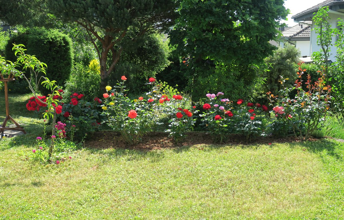 So ist das Blumenbeet wieder begehbar, die Rosen kommen zur Geltung, und nächstes Jahr wird es wieder wie im vorhergehenden Bild