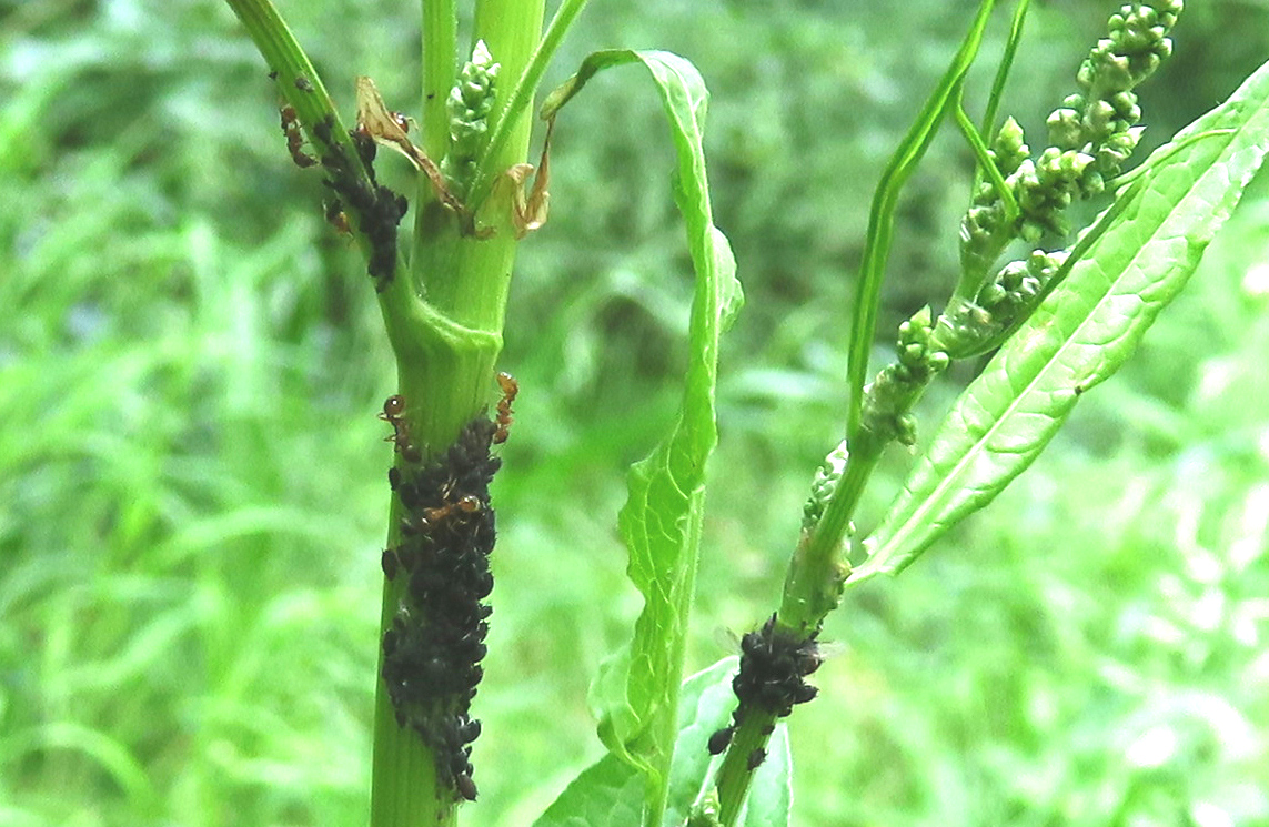 Myrmica cf. rubra melken ihre Blattläuse am Sauerampfer.