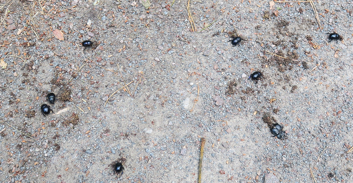 Man trifft inzwischen auf sonnigen Waldwegen sehr viele Mistkäfer. Seit das Reiten in Mode gekommen ist, gibt es Pferdeäpfel,