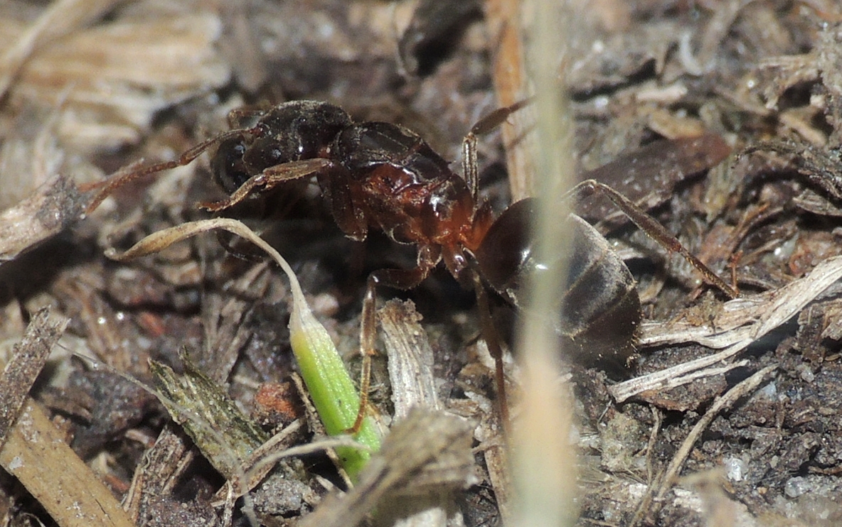 Formica rufa – Gruppe), die den Waldweg querten, sowie eine Arbeiterin von