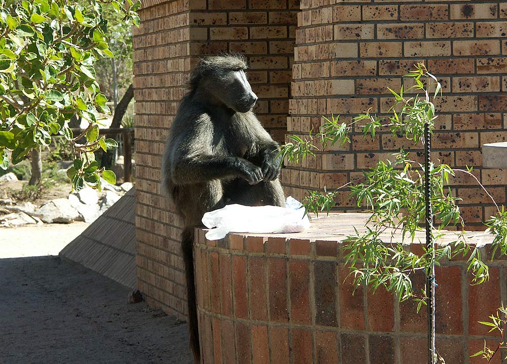 Plötzlich ein Schrei meiner Frau: Unangemeldeter Besuch! - In der Küche befasste sich dieser kuschelige Bärenpavian (Papio ursinus)