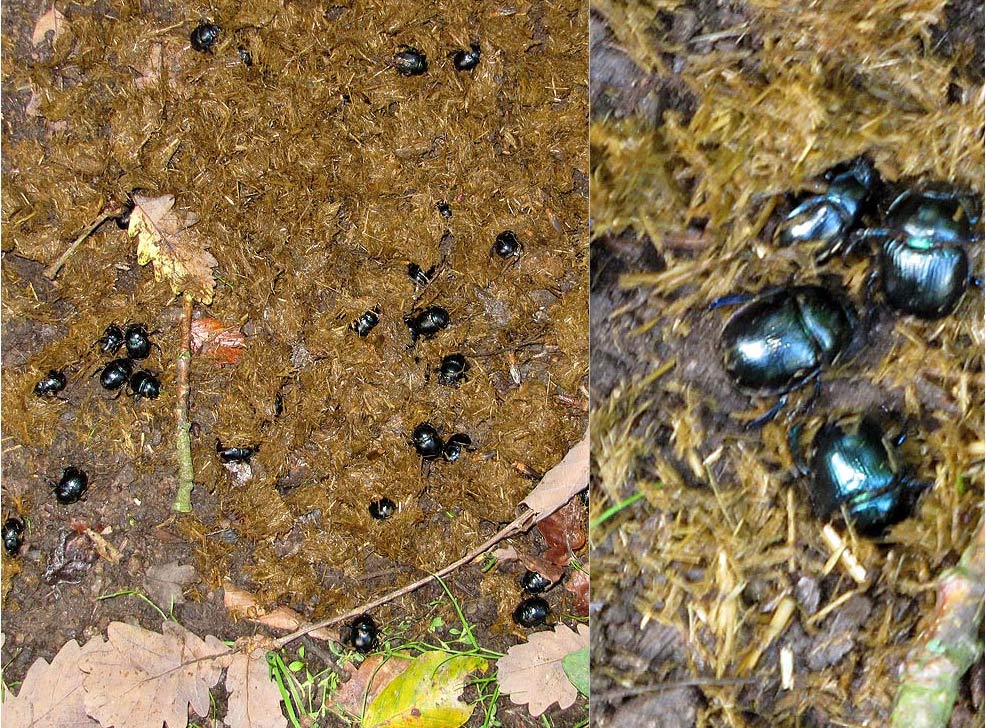 Nachdem Pferde in der Nachkriegszeit als Zugtiere mehr und mehr durch motorisierte Fahrzeugen ersetzt wurden, boomt in jüngeren Jahren die Zucht und Nutzung von Reitpferden. Viele Pferde hinterlassen daher ihre „Äpfel“ auch auf Waldwegen, wo ein Dorado für Mistkäfer entstanden ist: Sie vergraben Pferdemist im Boden, legen daran ihre Eier ab, und die Larven verzehren diese Futtervorräte. - Eine Populationszunahme, die recht einfach zu erklären ist!