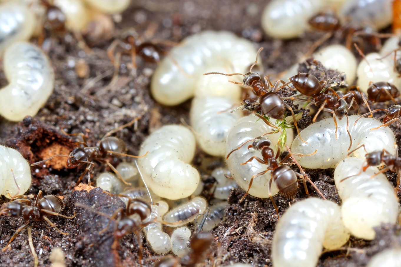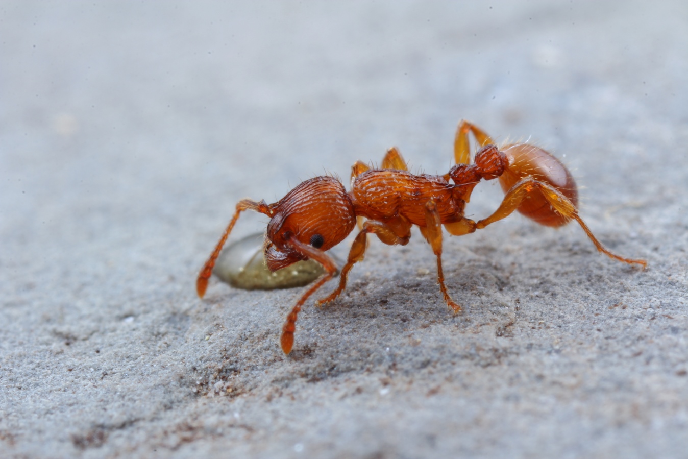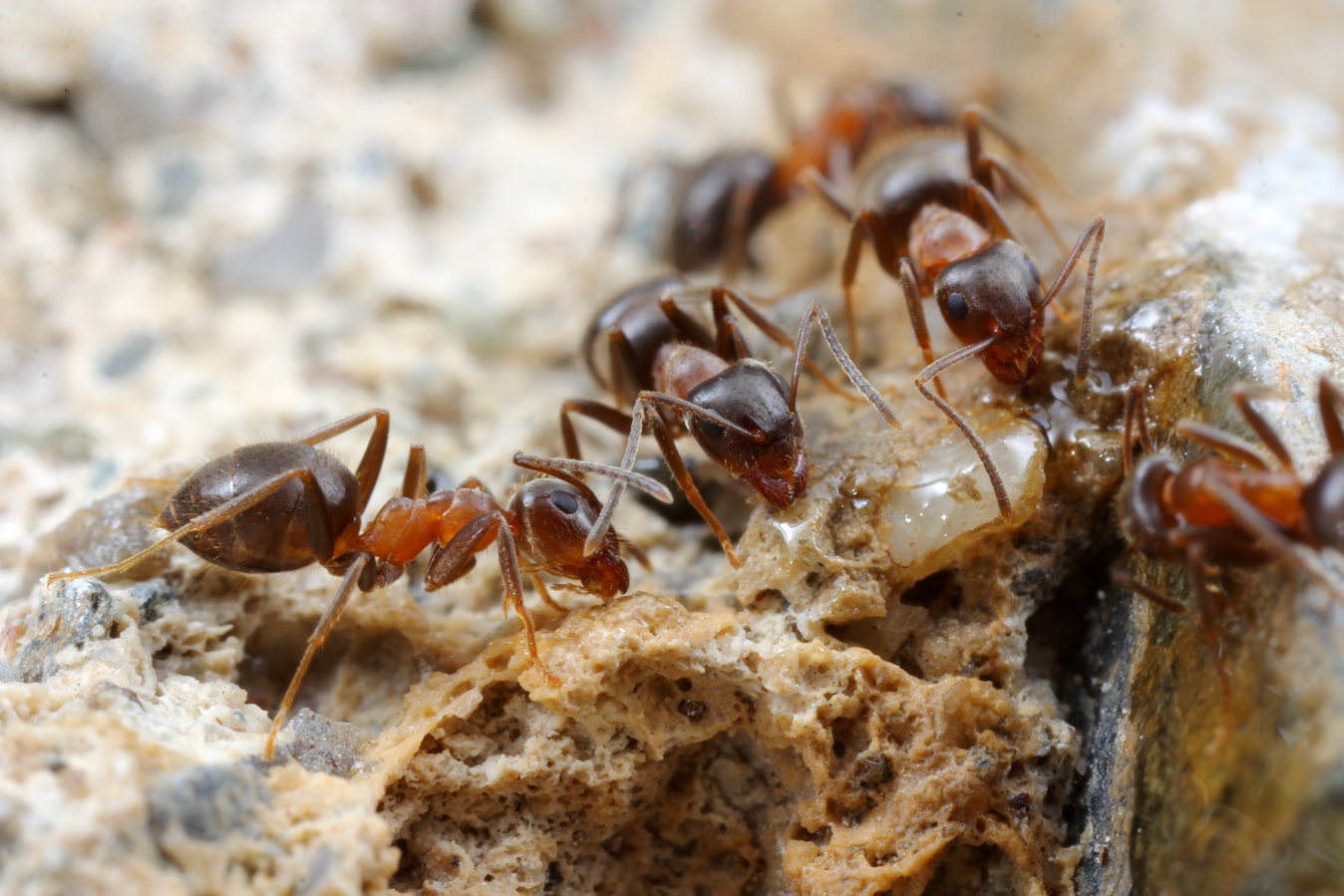 7. Leptothorax acervorum mit bemerkenswertem Nistort: zwischen Felsplatten! Seltsam: Die Männchen sind größer als die Gynen