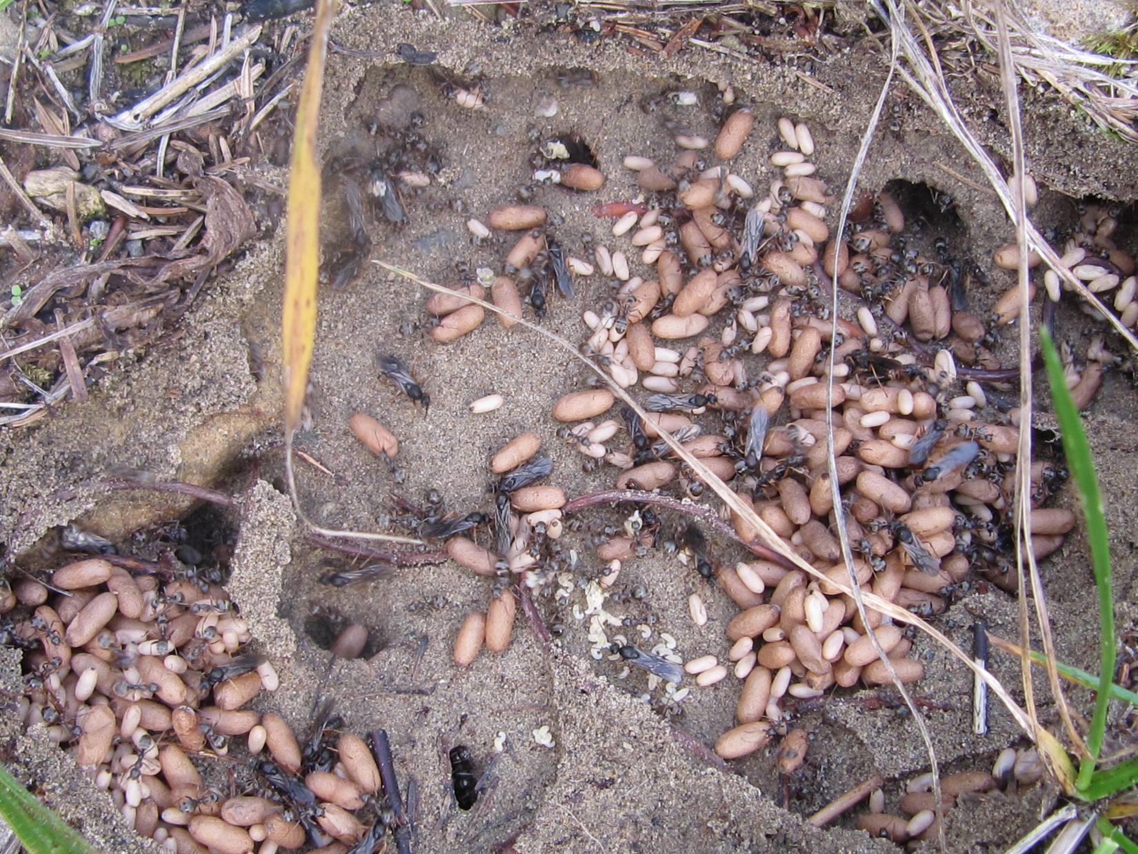 Eine Sandbank weiter unten scheint M. rubida ganz zu fehlen, dafür ist Lasius cf. niger mit einigen grossen Nestern präsent. L. cf. niger furagfiert aber momentan deutlich weniger im Gelände als z.B. die Formica (Serviformica) sp.
