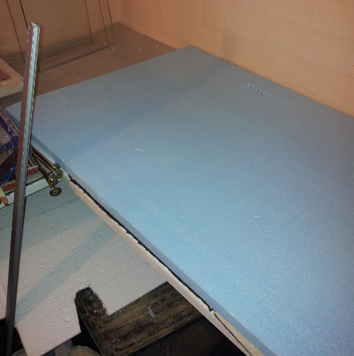 Unterlage aus Styropor damit nicht jeder Schritt im Keller auf die Arena übertragen wird.