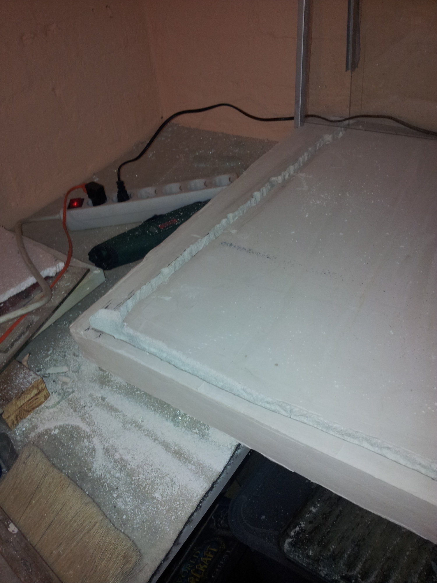 Für den Halt habe ich die Fläche drei mal mit einer Faser verstärkten Spachtelmasse gespachtelt.