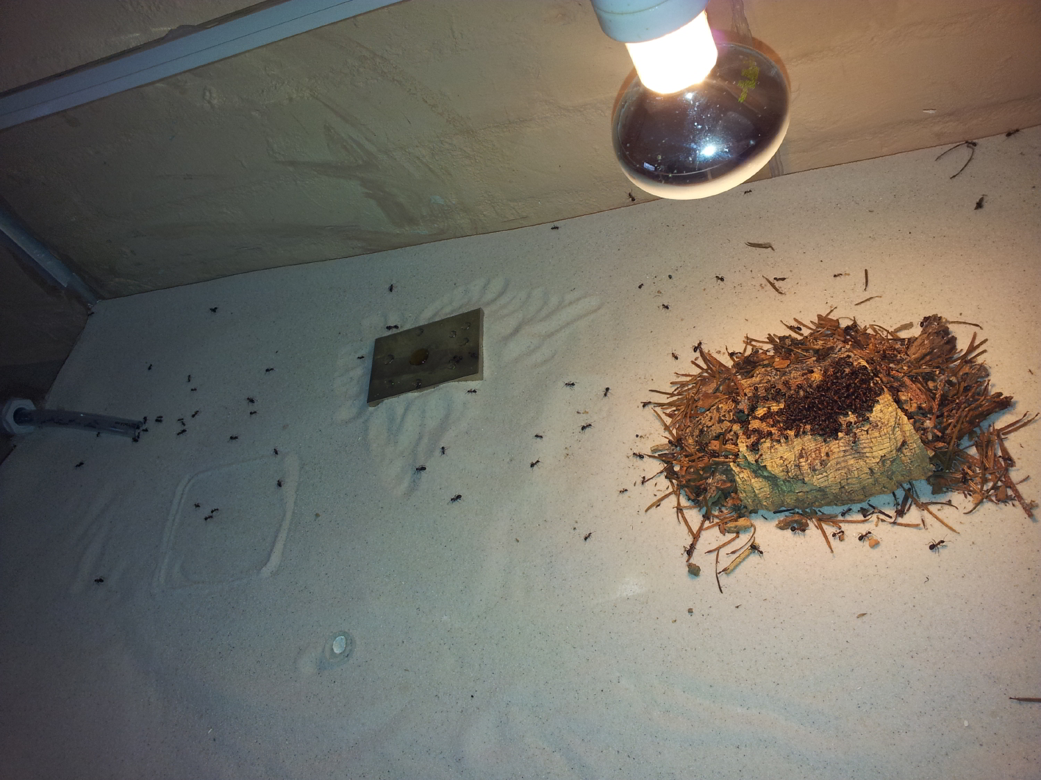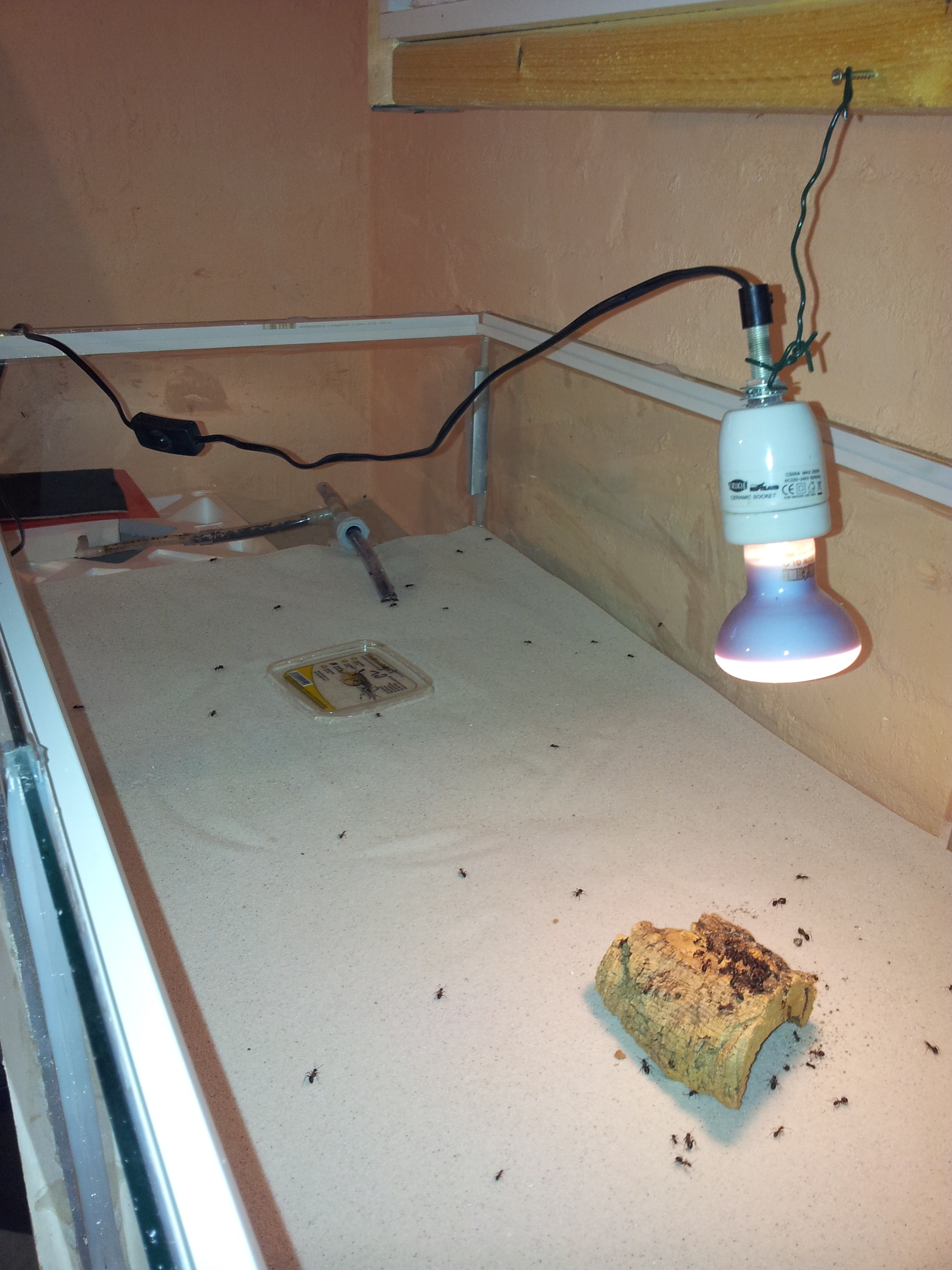 Da es im Keller zwischen 12 und 14 Grad ist benötigen die "unechten" Waldameisen um auf zu wachen etwas Wärme.
