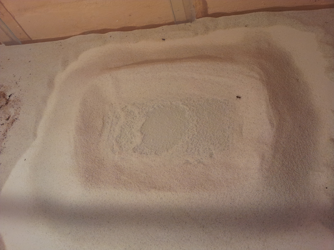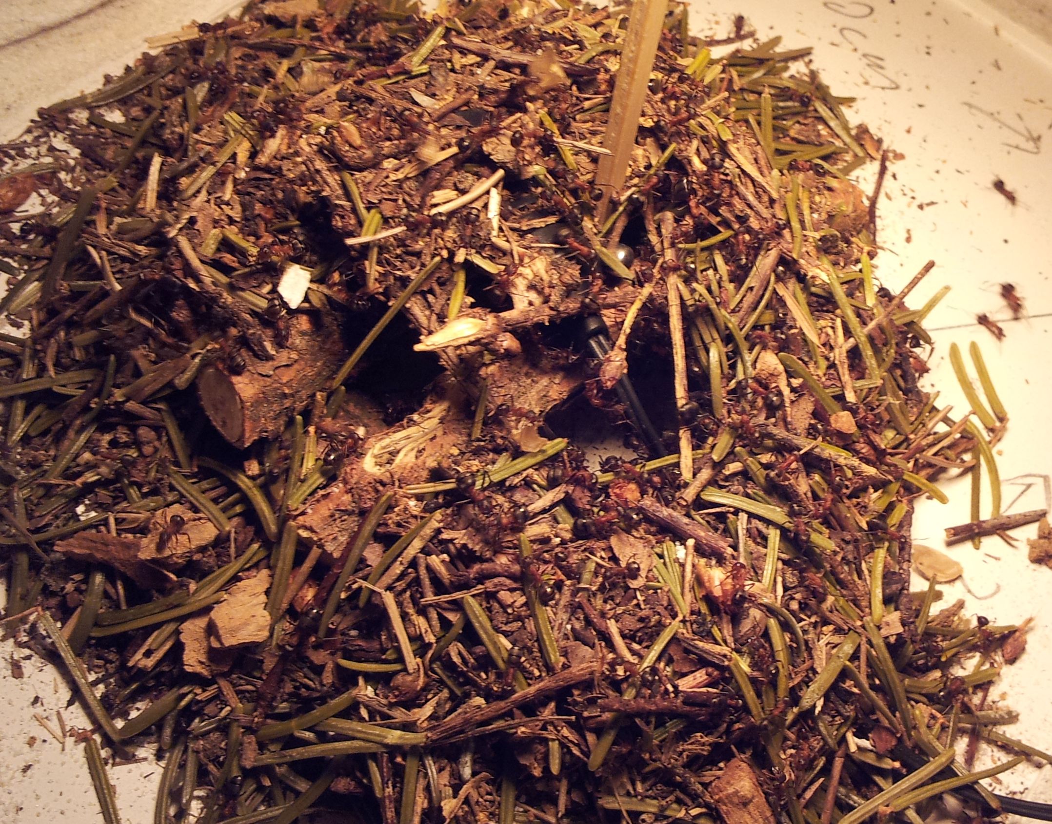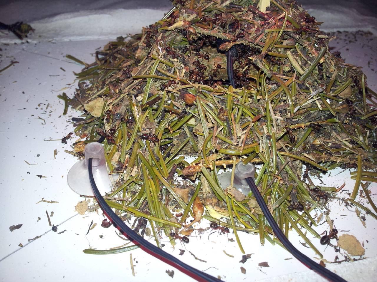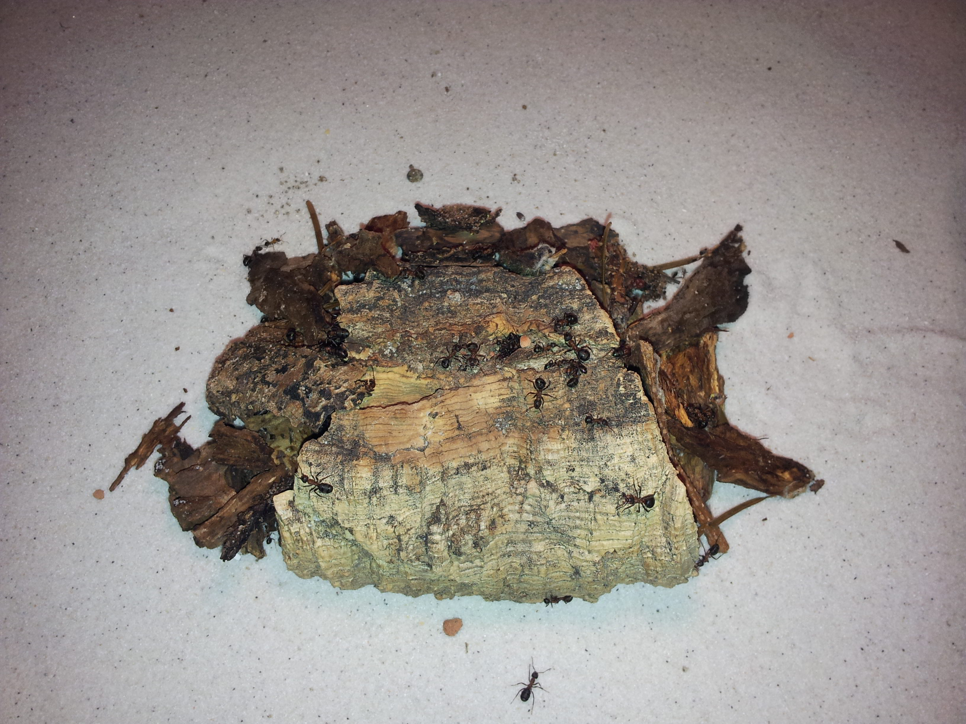 Und weil die Ameisen gerne Baumaterial an der Wärmequelle sammeln wurde ihnen etwas zu Verfügung gestellt. Das Material wurde gekocht und gebacken. :)