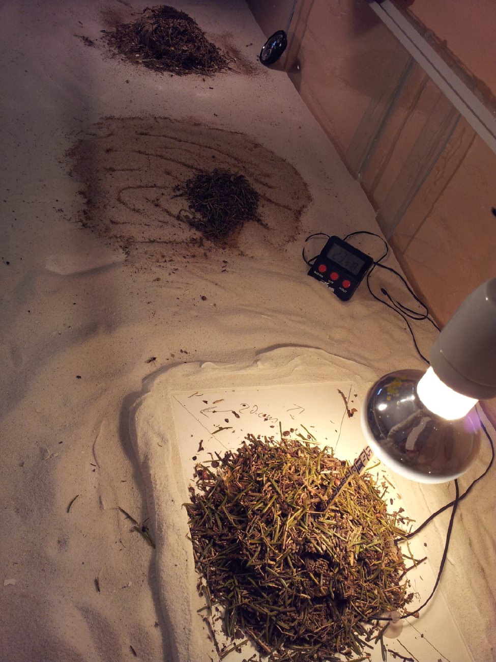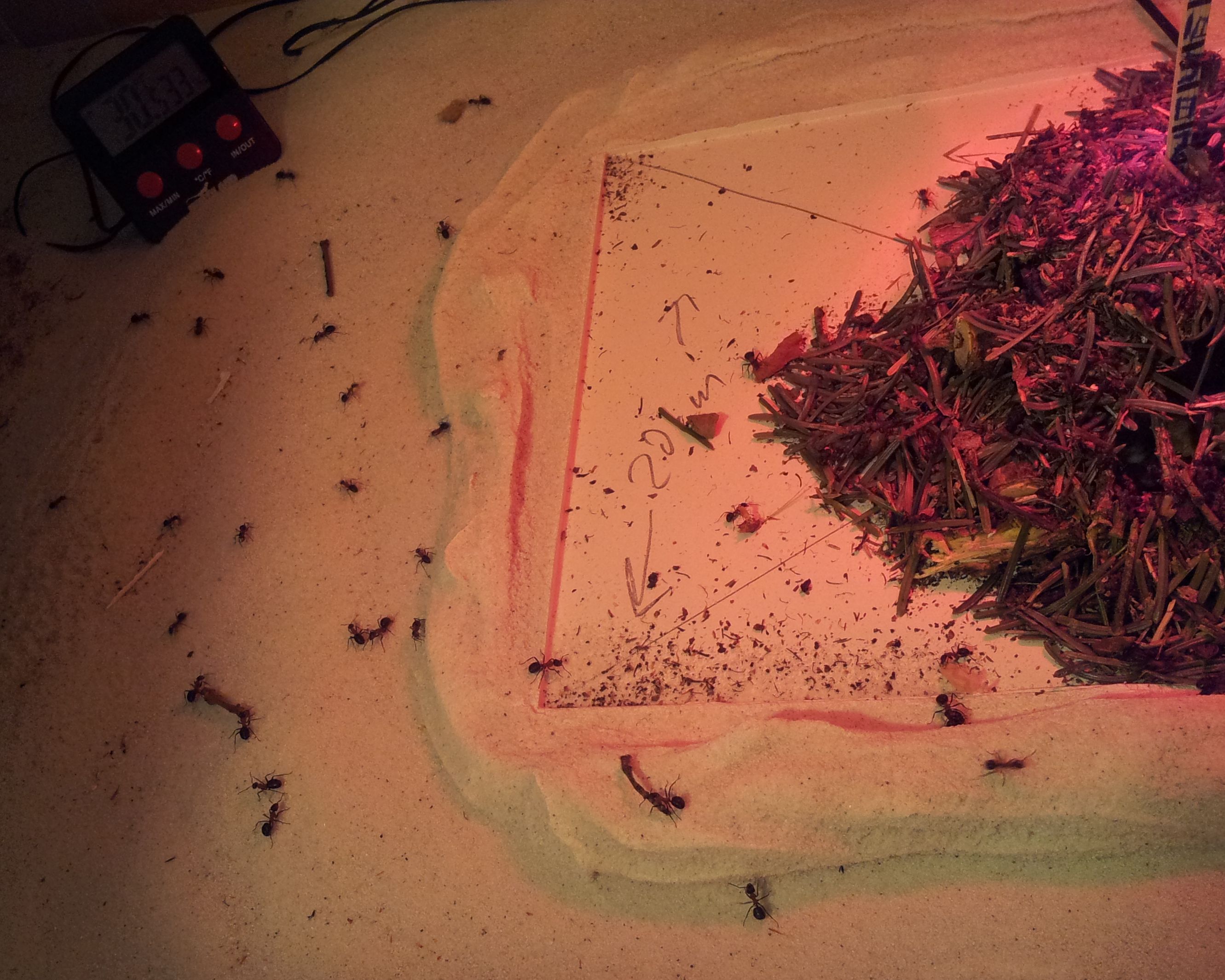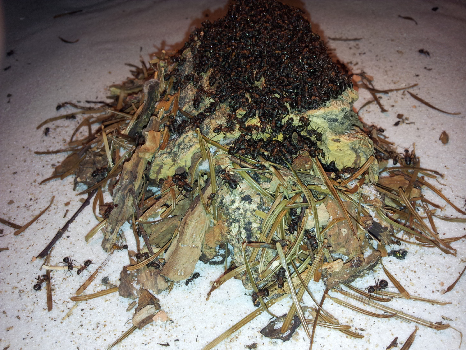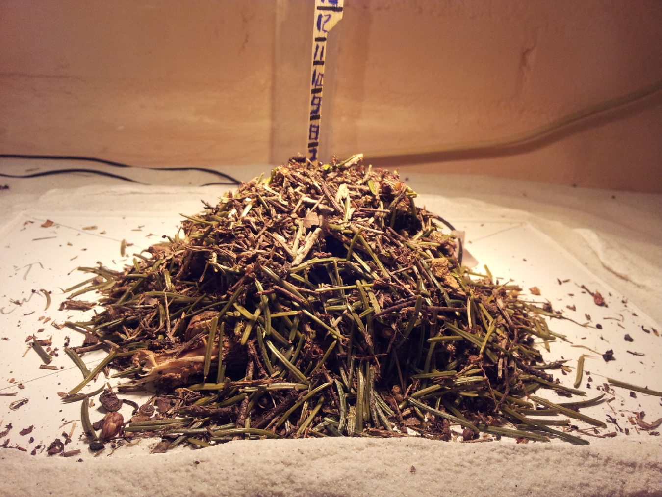 Und weil die Ameisen gerne Baumaterial an der Wärmequelle sammeln wurde ihnen etwas zu Verfügung gestellt. Das Material wurde gekocht und gebacken. :)