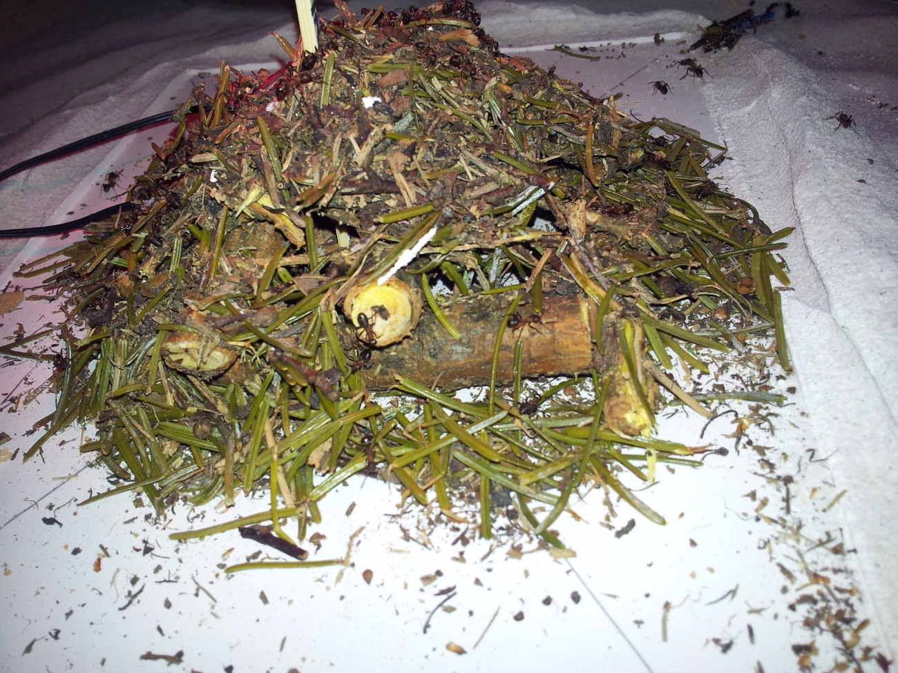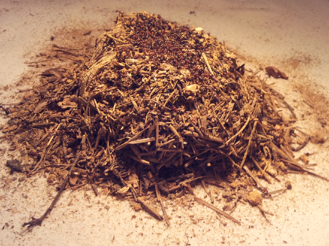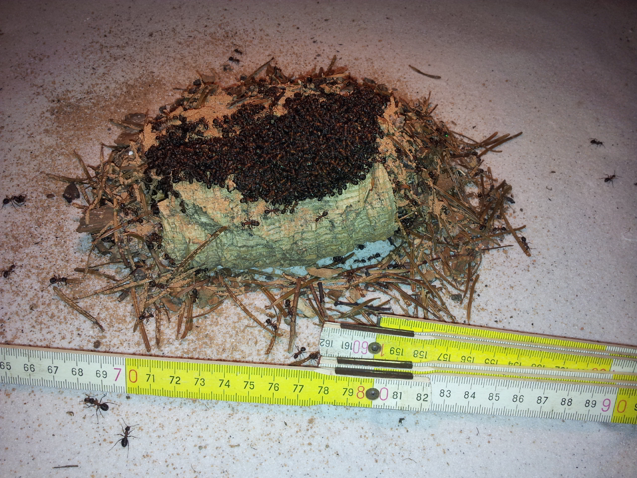 Das letze mal Mal mitbauen. :D Habe die Tannennadeln einfach drüber gestreut. Ab jetzt bauen die Ameisen.