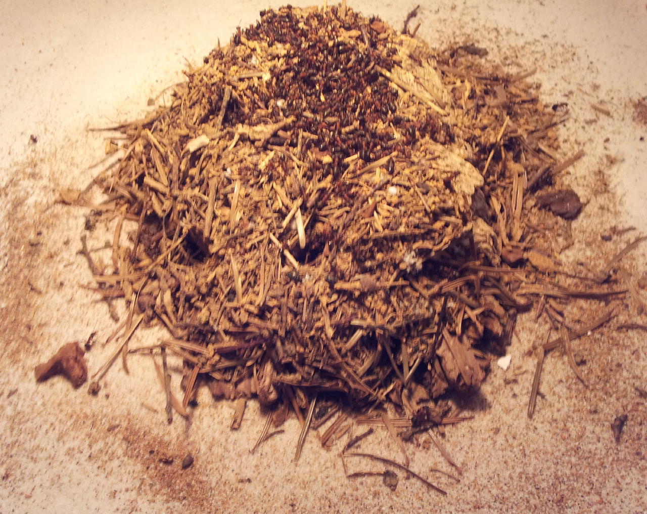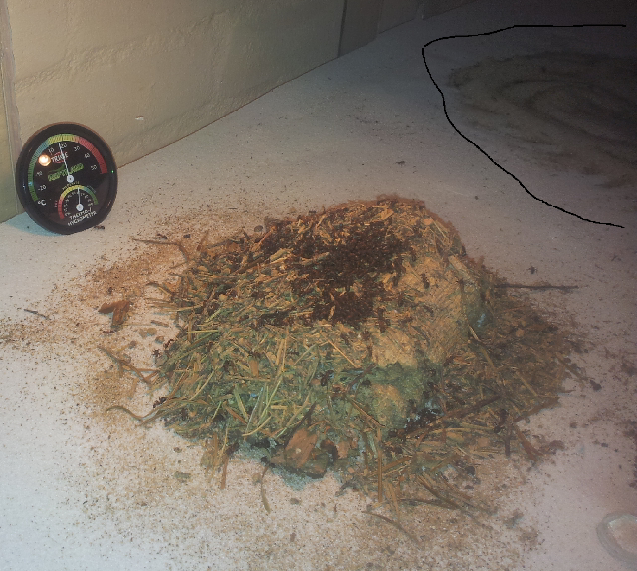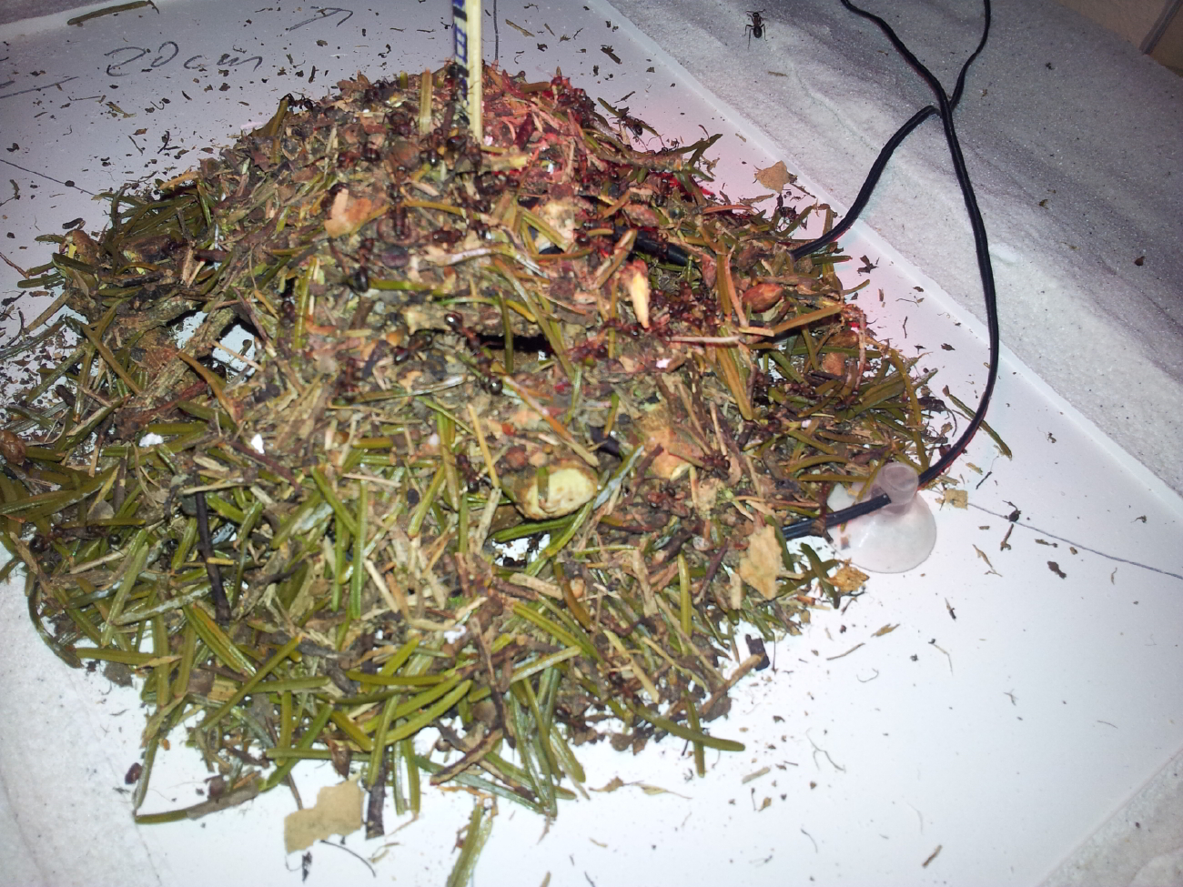 Das letze mal Mal mitbauen. :D Habe die Tannennadeln einfach drüber gestreut. Ab jetzt bauen die Ameisen.