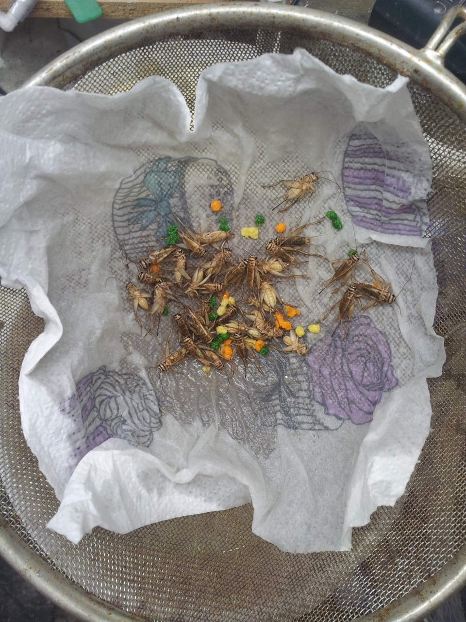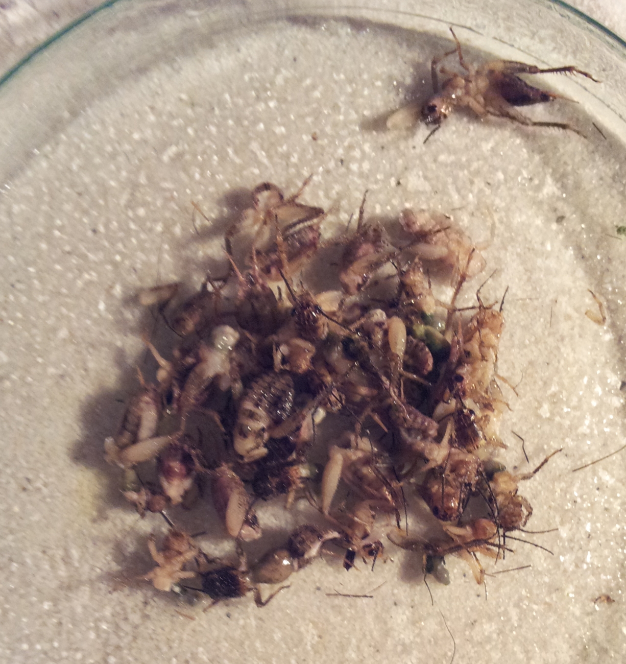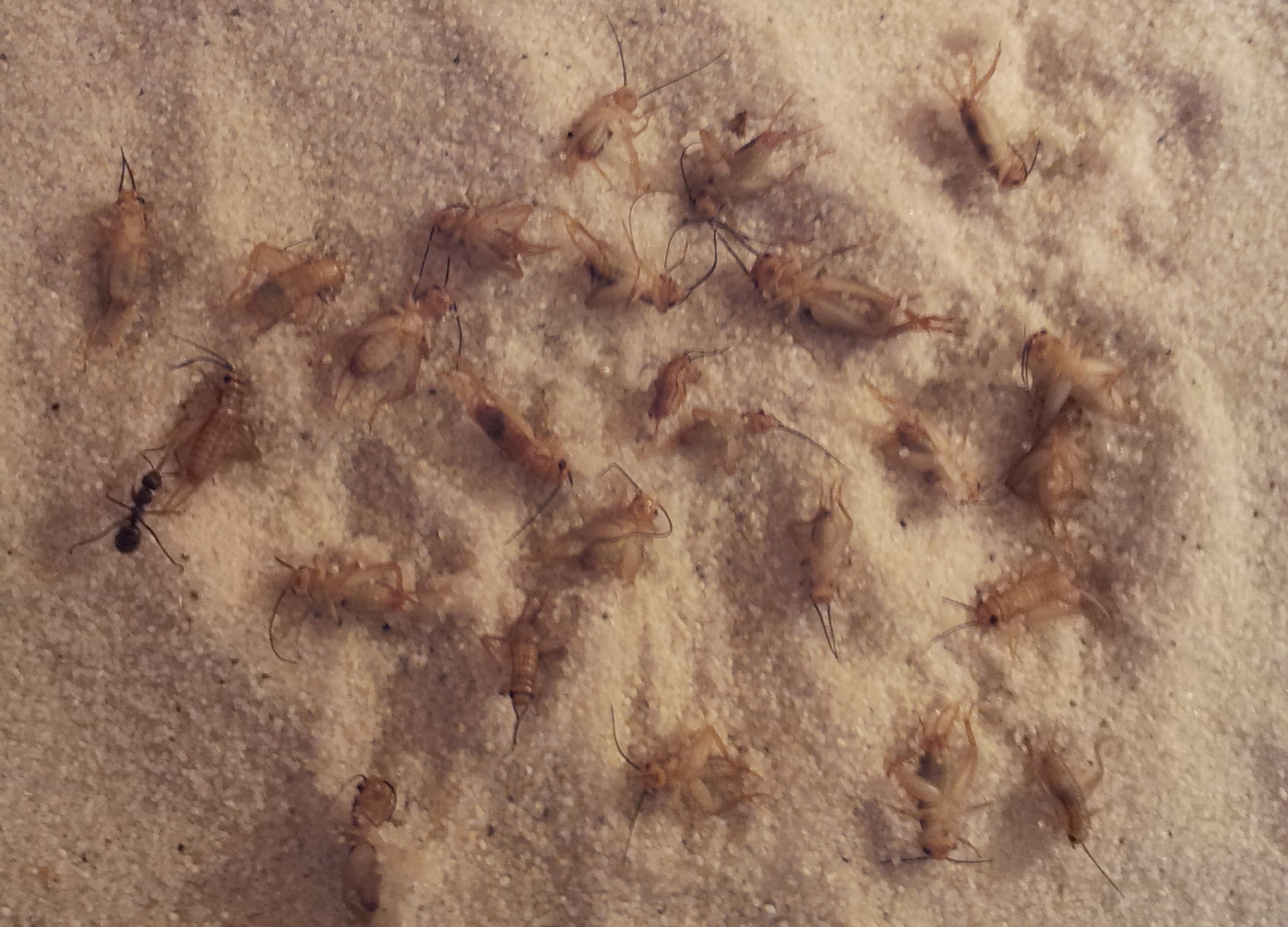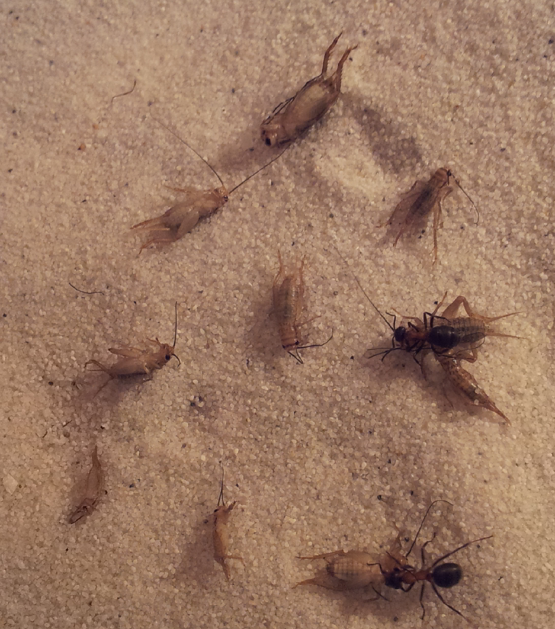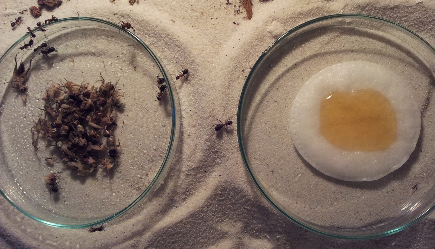 Anschließend pulle ich die Futtertiere mir einer Pinzette heraus und verteile sie an die hungrigen Ameisen.