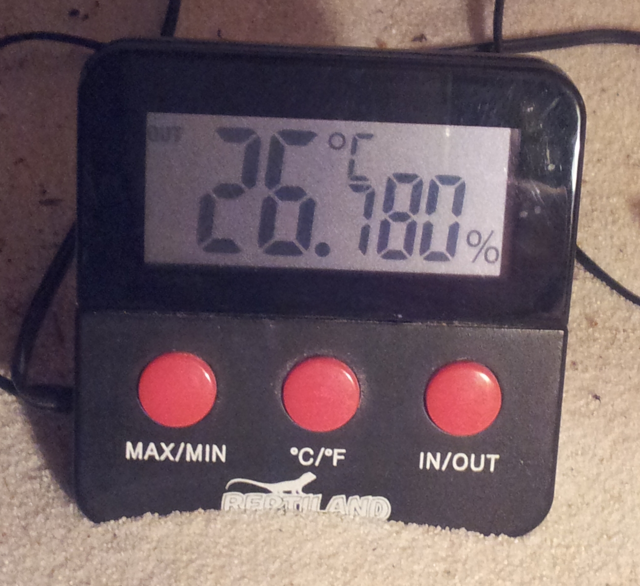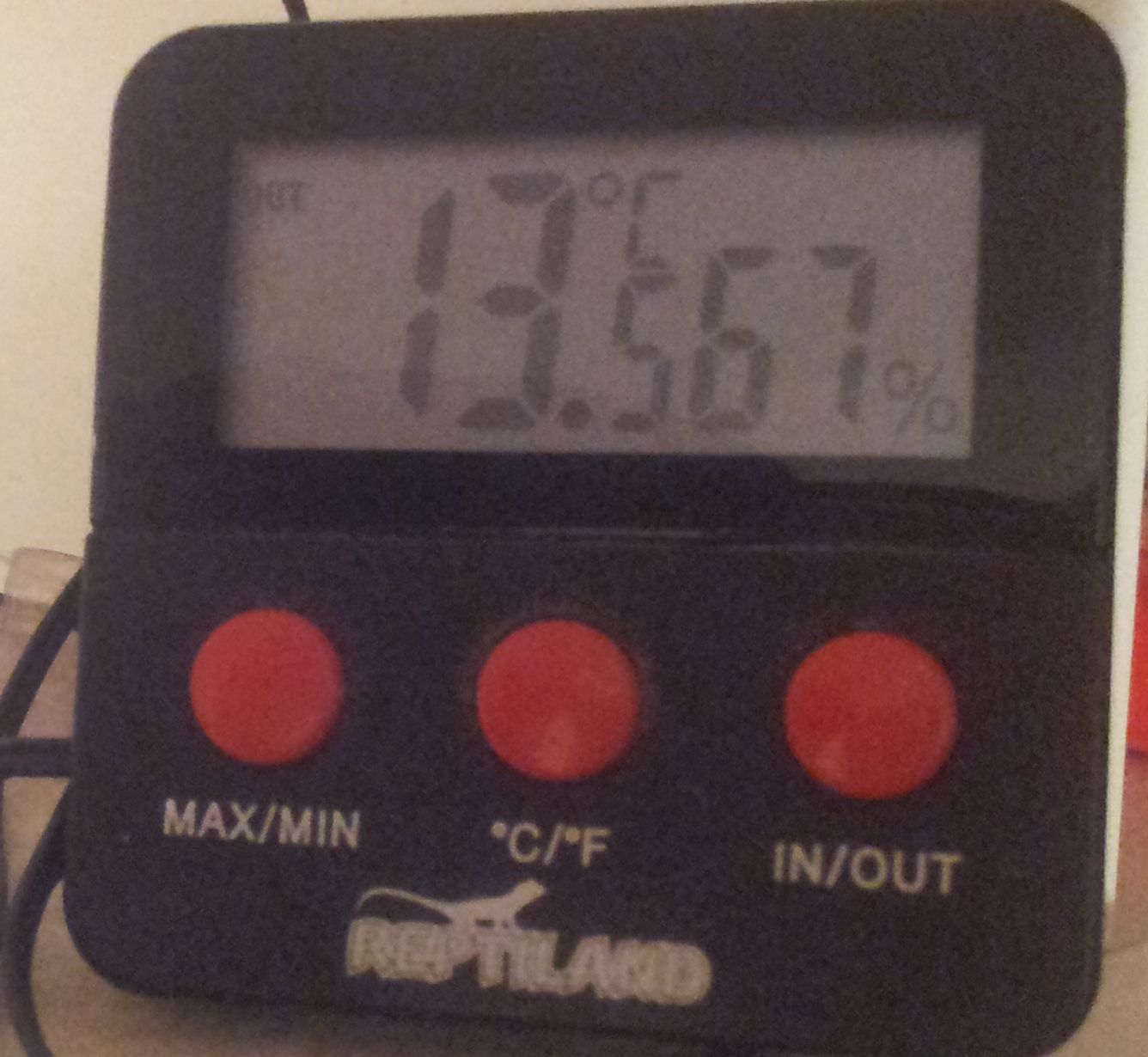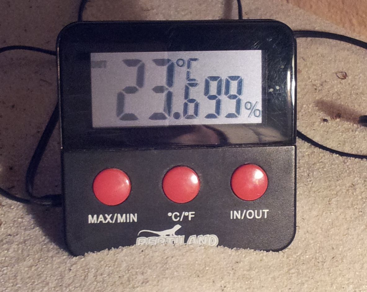 Auf dem Thermometer kann man erkennen das es zum späten Nachmittag hin um 5 % trockener wurde.
