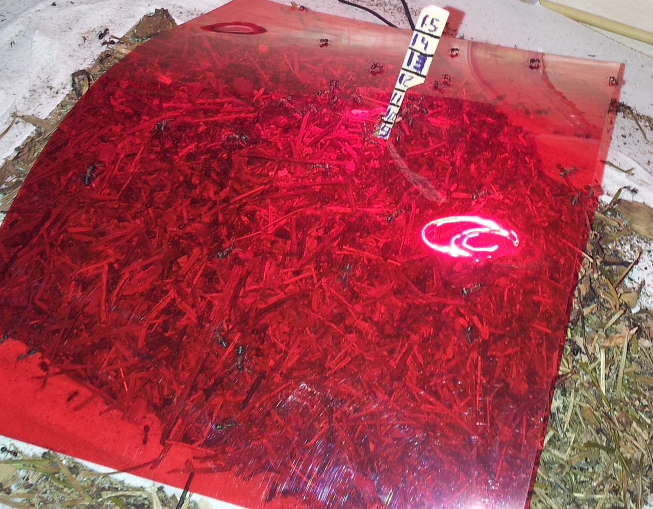 Damit sich die Ameisen etwas geborgener füllen bedecke ich das Nest mit einer roten Folie.