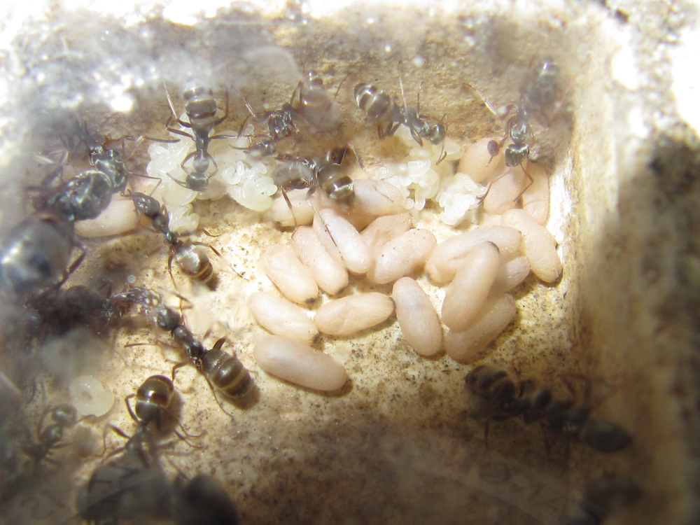 Die Kokos meiner Formica fusca Kolonie sind größer als die Arbeiterinnen. Das war letztes Jahr nicht so.