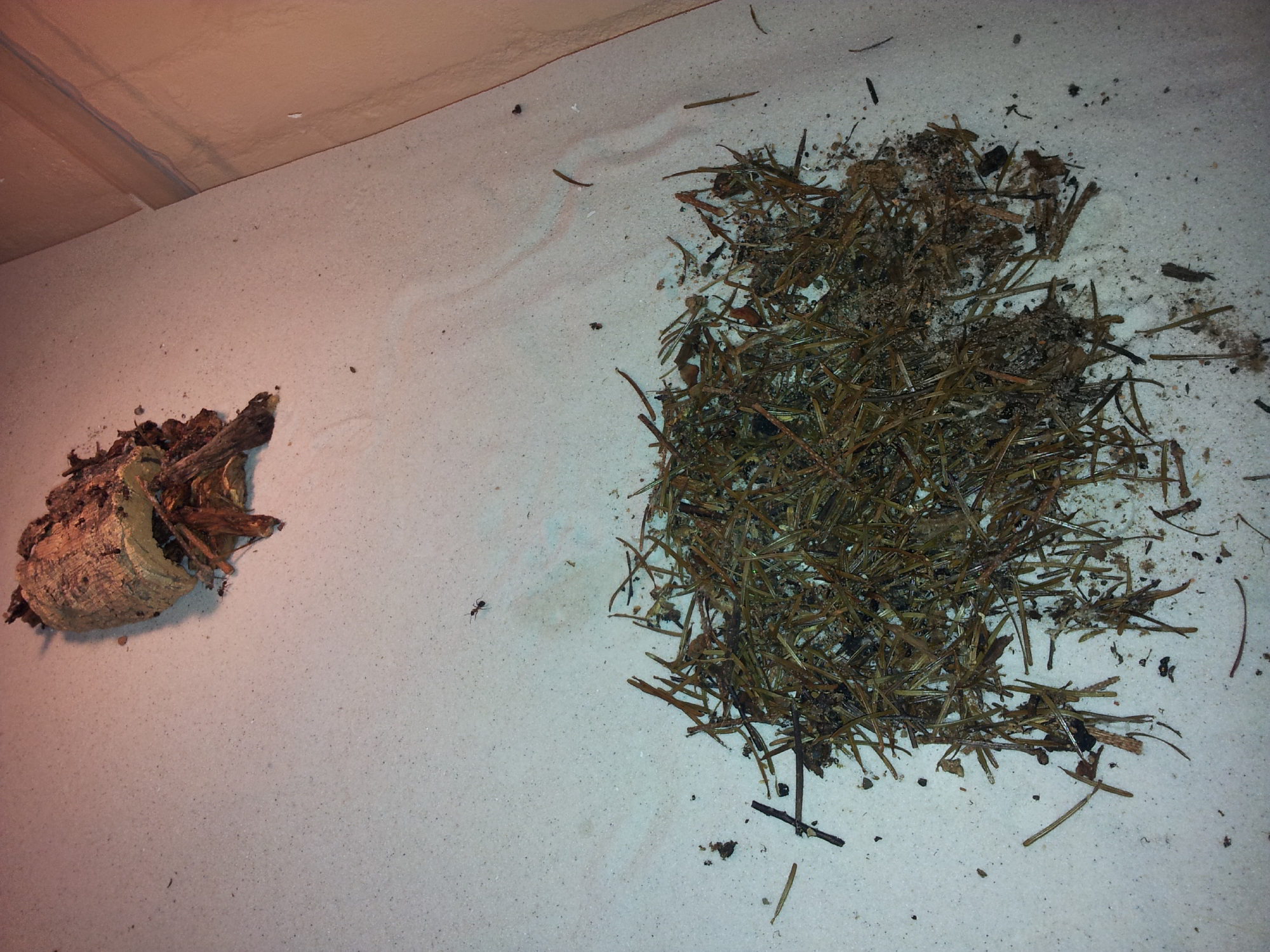 Und weil die Ameisen gerne Baumaterial an der Wärmequelle sammeln wurde ihnen etwas zu Verfügung gestellt. Das Material wurde gekocht und gebacken. :)