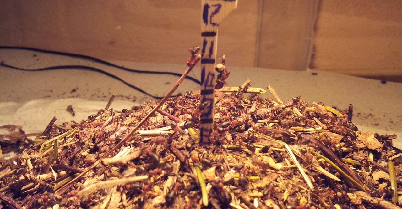 Wie man sieht arbeiten die Ameisen fleißig am Hügel.