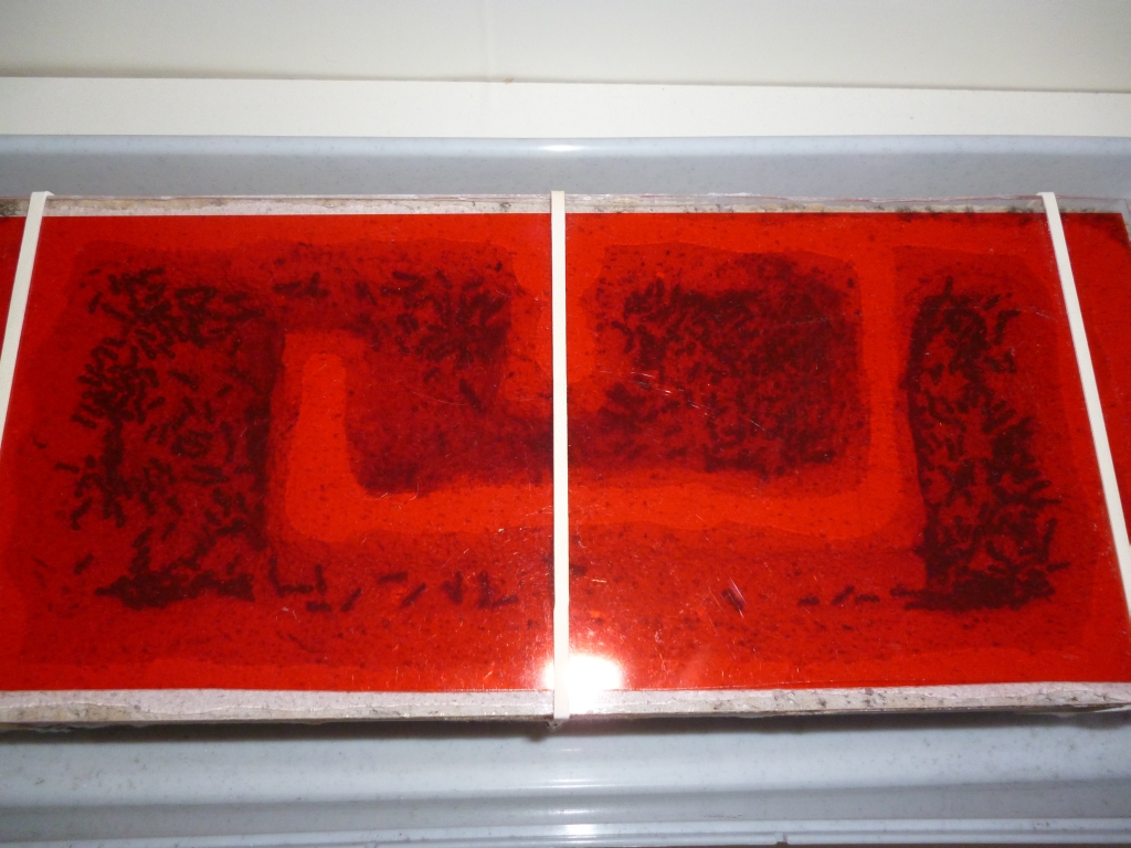 Zunächst ist mir beim öffnen der Zimmertür ein starker Geruch nach Ameisensäure entgegen gekommen. Mit dem Wachsen der Kolonie wird das Ameisensäureproduktion und -abgabe noch weiter angetrieben. Jedermanns Sache ist das bestimmt nicht, und was nach vier Tagen für eine Duftwolke entstanden ist, ist schon beachtlich. Na gut, eben durchgelüftet und die Zimmerluft war wieder frei von Ameisensäure.