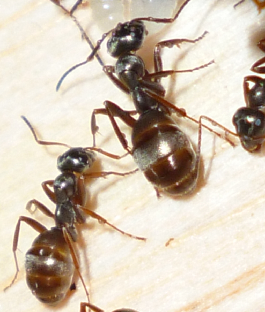 Mit diesem Wachstum sind erste sehr große Arbeiterinnen aufgetreten. Waren letzte Saison auffällig viele kleine Arbeiterinnen und ein paar mittelgroße geschlüpft, so sind diese Saison viele mittelgroße und einige sehr große geschlüpft. Die Unterschiede sind nicht so markant wie bei Camponotus, aber es ist dennoch ein deutlicher Polymorphismus vorhanden.