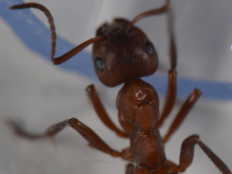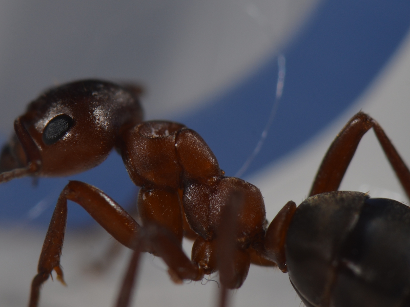 aus aktuellem Anlass hier zwei Bilder einer erkrankten Arbeiterin (Pilz?). Sie wollte unbedingt aus der Arena entkommen und kletterte die ganze Zeit die Wände hoch, obwohl sie das sonst eigentlich meist unterlassen. Ihr Verhalten war schwerfällig und ruhig, keine Spur mehr vom sonst so aggressiven Gemüt.
