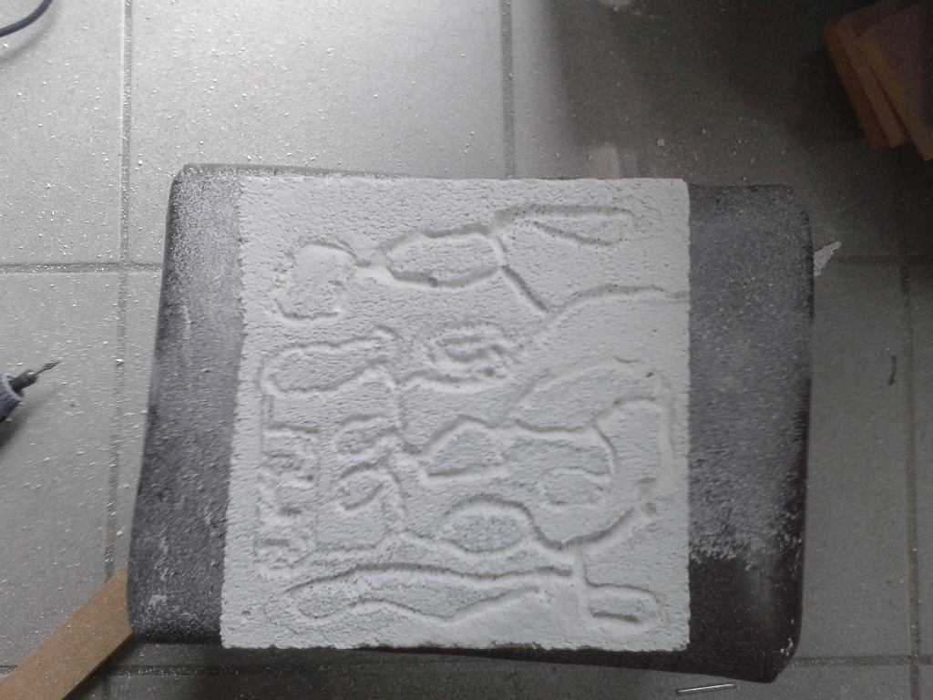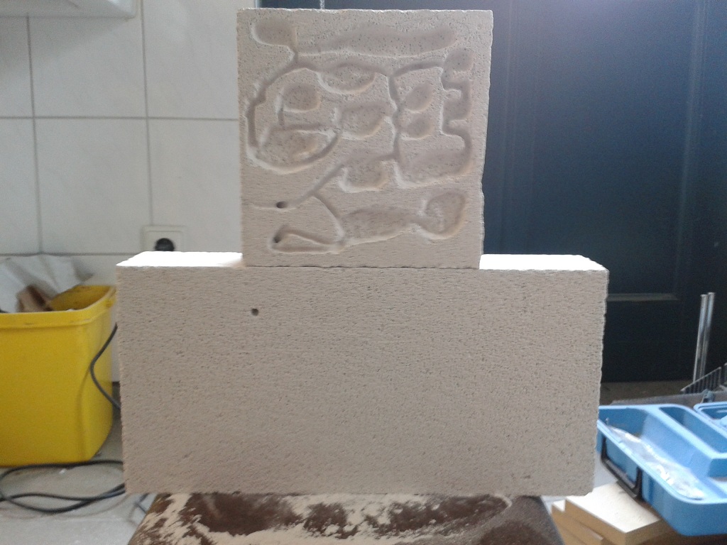Mir wurde gesagt es soll nicht zu groß werden damit sie sich nicht verirren, also muss der stein kleiner gemacht werden. Jetzt hatte er eine Größe von 20x20x7.5 cm.