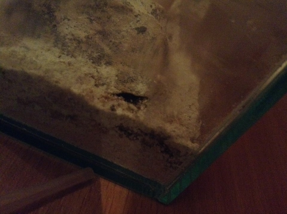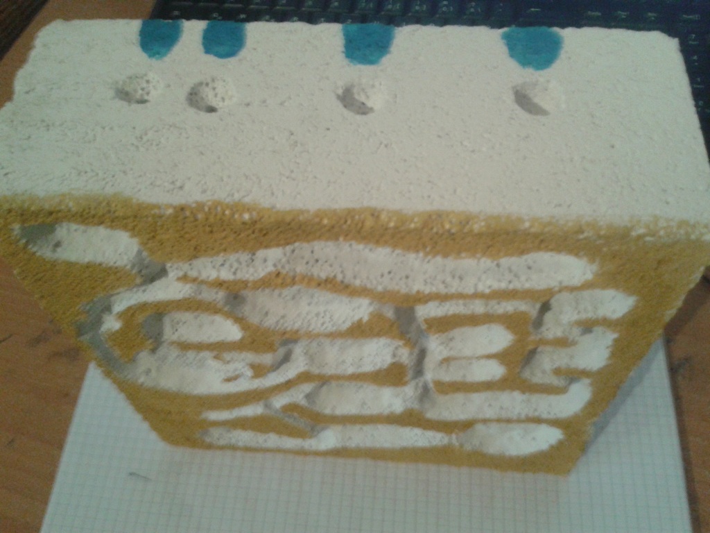 Jetzt noch was zur Bewässerung (Befeuchtung) des Nestes. Ich habe mir gedacht das ich eine ganz leichte Methode wähle, also habe ich von oben 4 löcher in das Ytong-Nest gebohrt. Die linken Löcher sind kleiner als die rechten Löcher und Stufenweise gehen die Bohrungen von Links nach Rechts tiefer (um das Nest verschieden zu befeuchten).