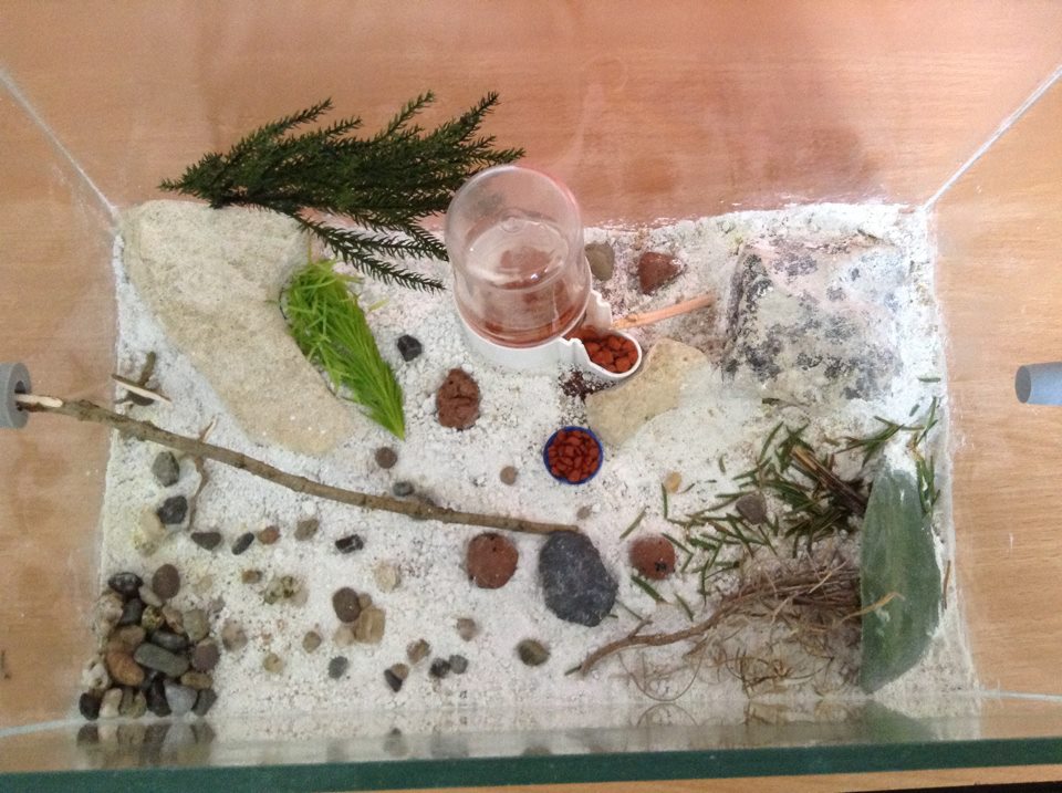 Hier die Neu eingerichtete Arena von vorne ich hab alles so Eingerichtet da sie ja auch dort drin leben (ihr Nest haben). Wer es mit der Alten direkt vergleichen will einfach Hoch scrollen.