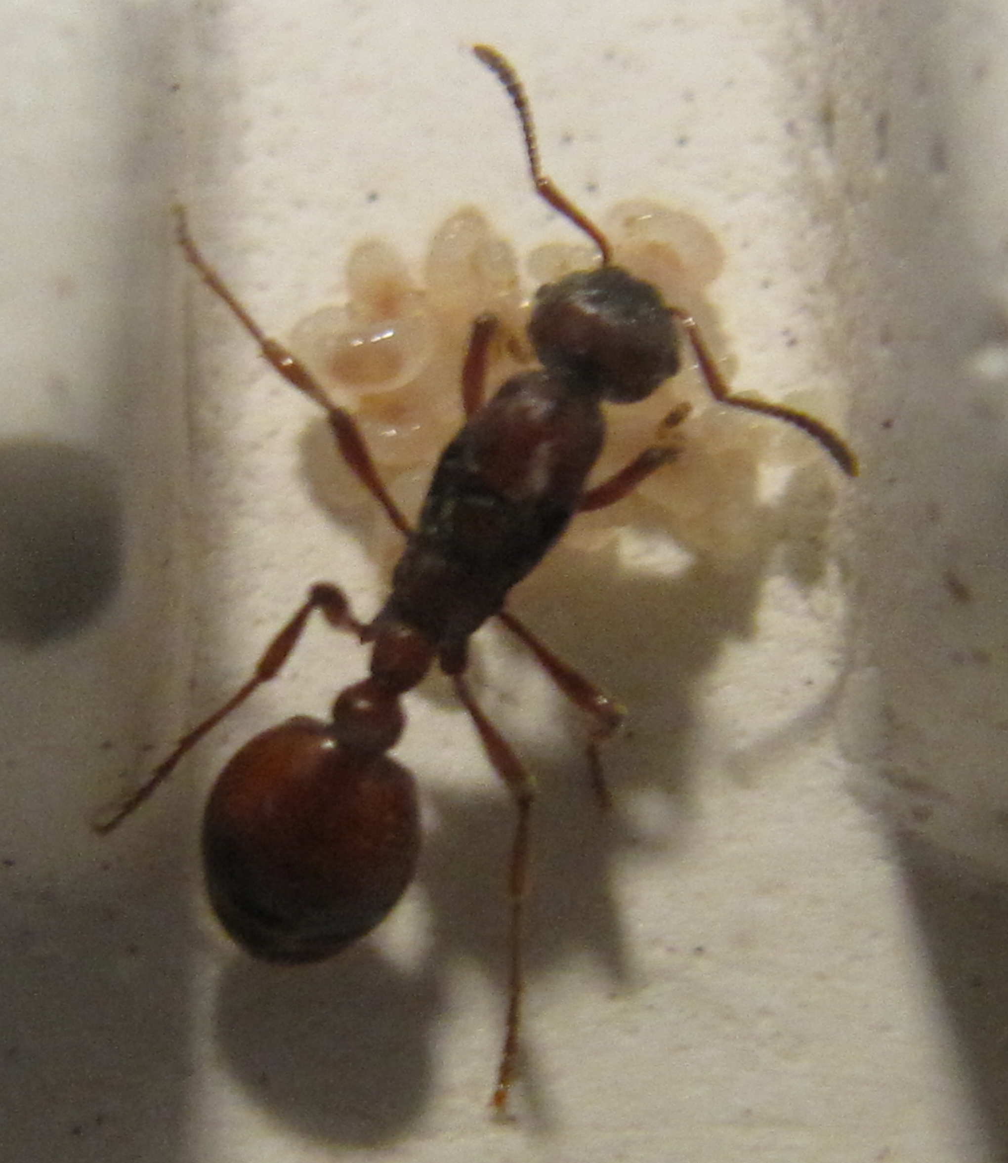 Edit: Eben konnte ich die Königin mit einem Eipaket zwischen den Mandibeln beobachten. Ob das die "alten" sind, oder ob sie neue gelegt hat, kann ich nicht sagen.