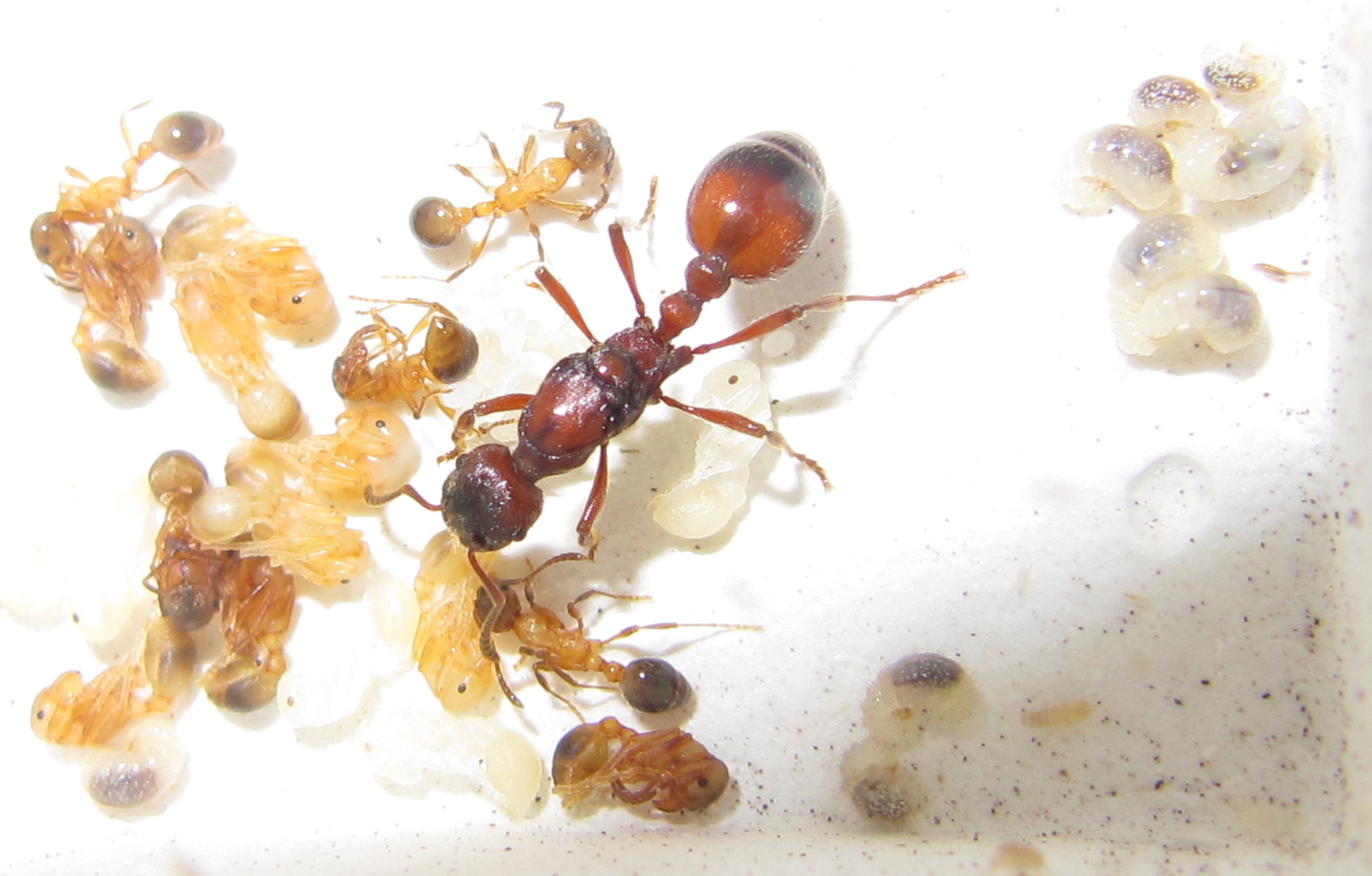 Die Arbeiterinnen kümmern sich um die Brut der "Adoptivgyne"