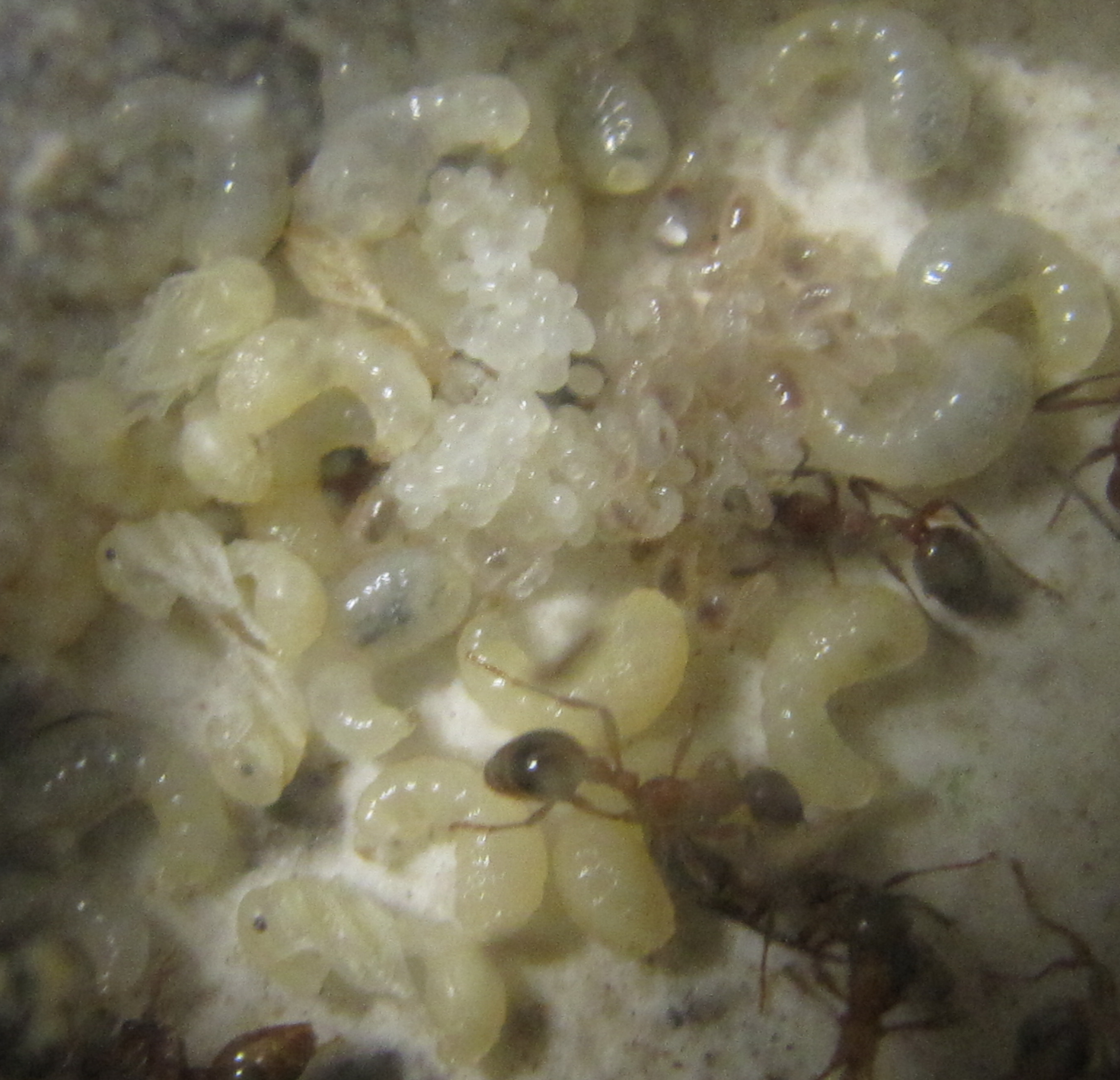 Bei Kolonie A sind verhältnismässig viele Eier und Larven in allen Stadien vorhanden. Bald sollten sich die ersten Lavern verpuppen.