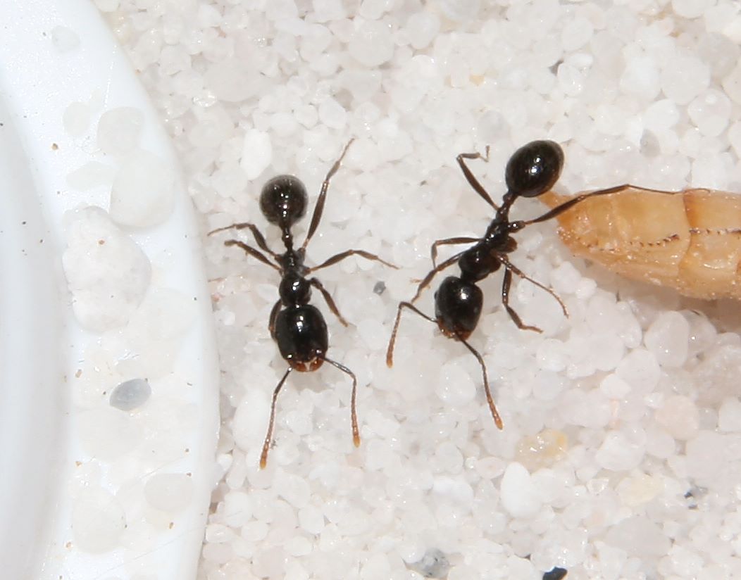 Nachdem ich jetzt mitsamt Ameisen umgezogen bin, bewohnen die kleinen inzwischen mein neues Büro. Die Temperaturen sind dort für Wohnräume relativ kühl und sie haben auch die Aktivitäten etwas eingeschränkt. Wenn sie gestört werden, reagieren sie jedoch sehr agil.
