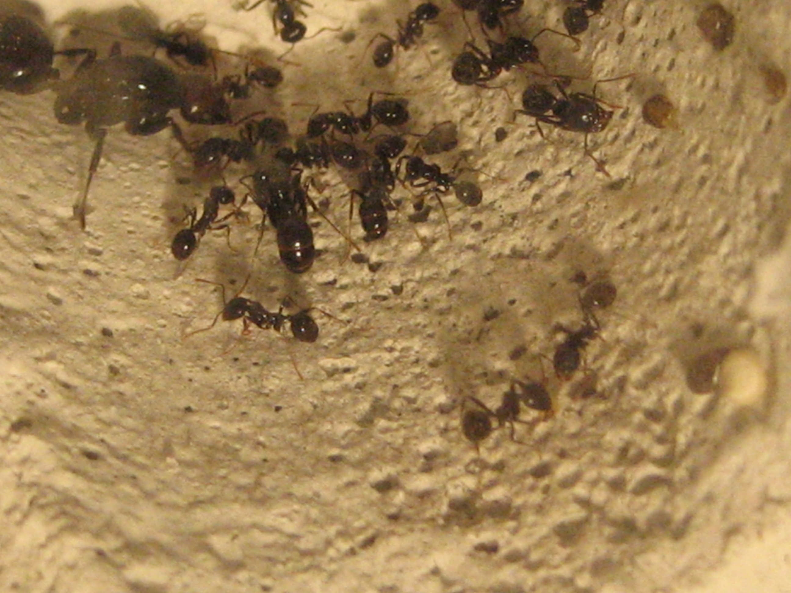 Ich werd ihnen wohl demnächst ein kleines Ytong oder evtl doch Gipsnest anbieten. Eine Unterteilung in Feucht- und Trockenteil halte ich noch nicht so sehr für notwendig, bei der Koloniegröße.