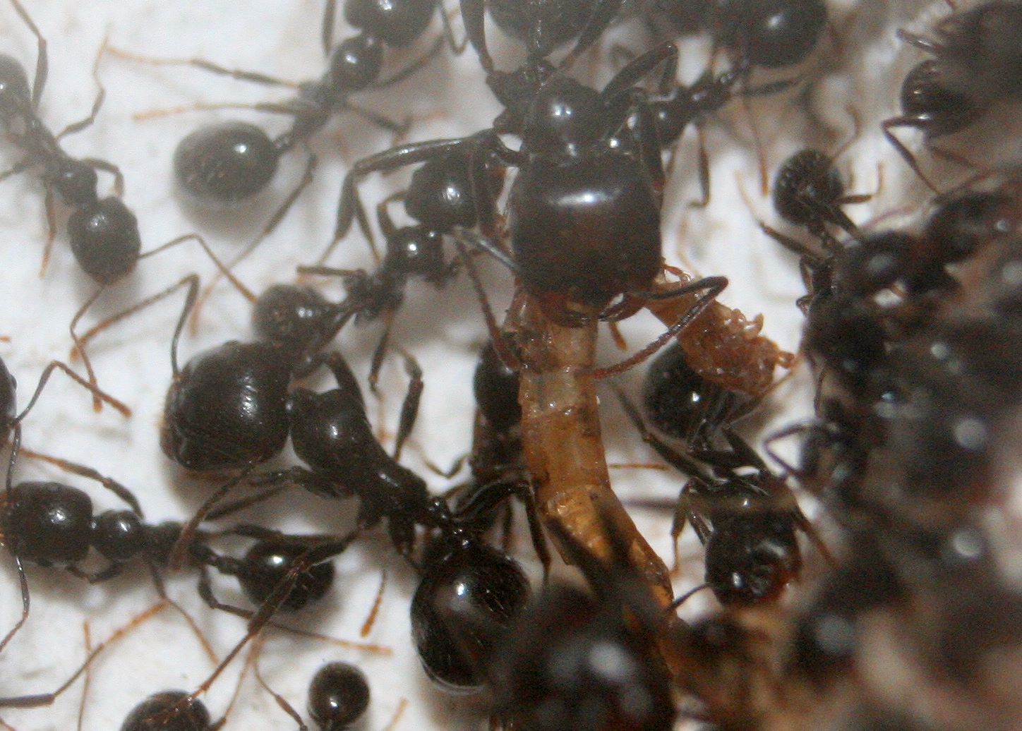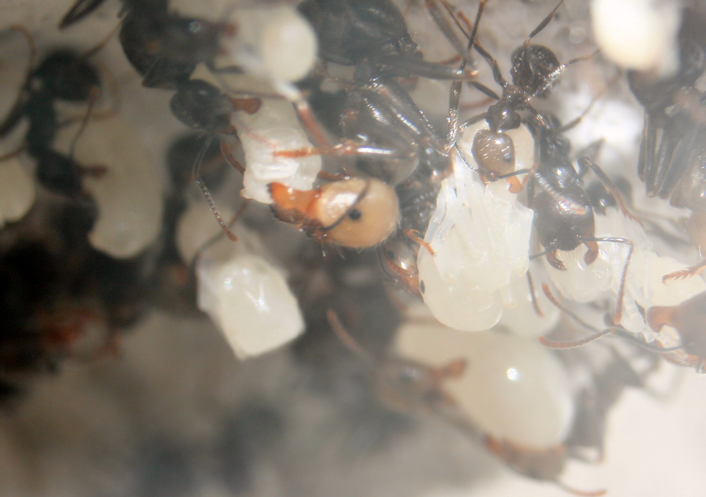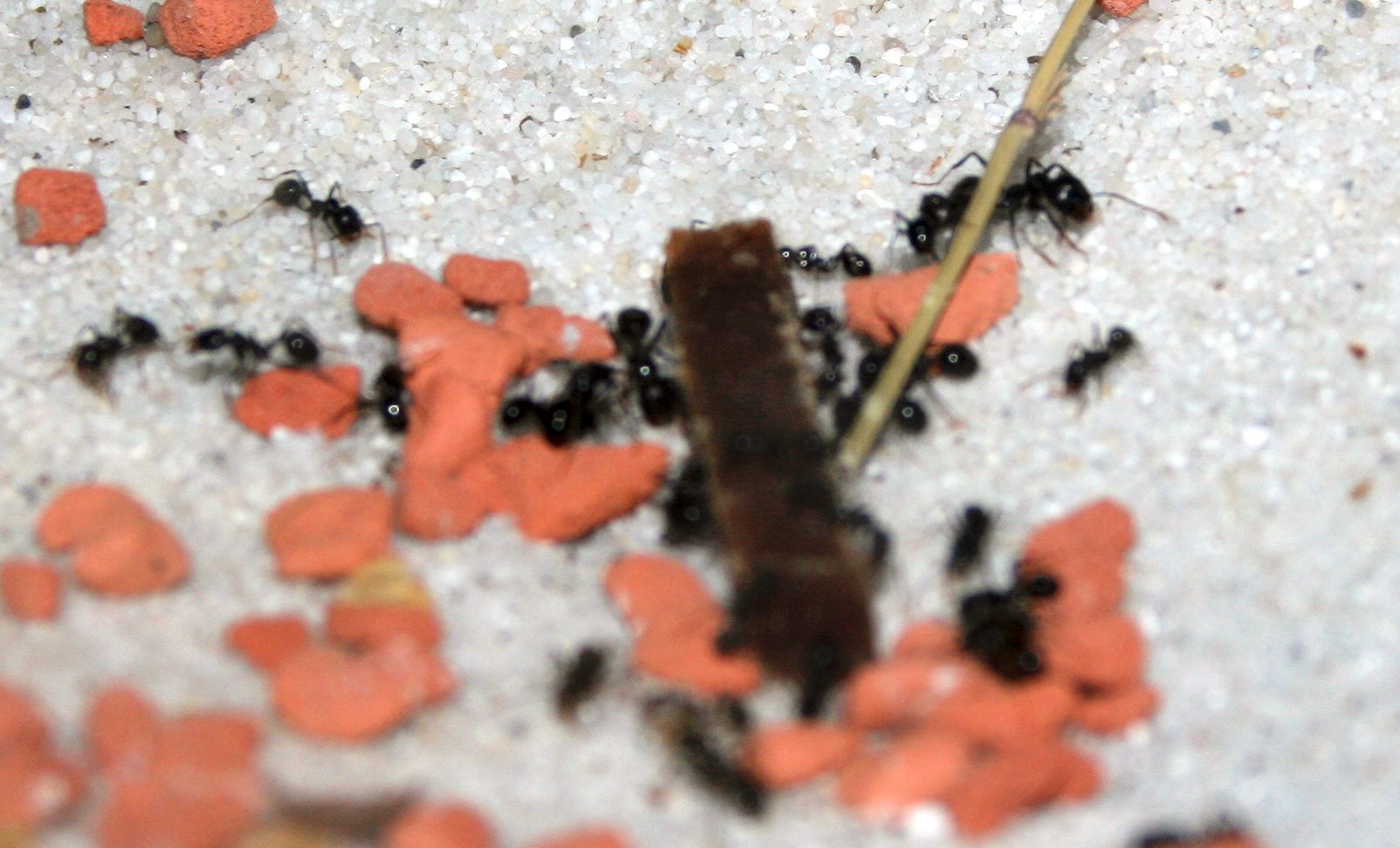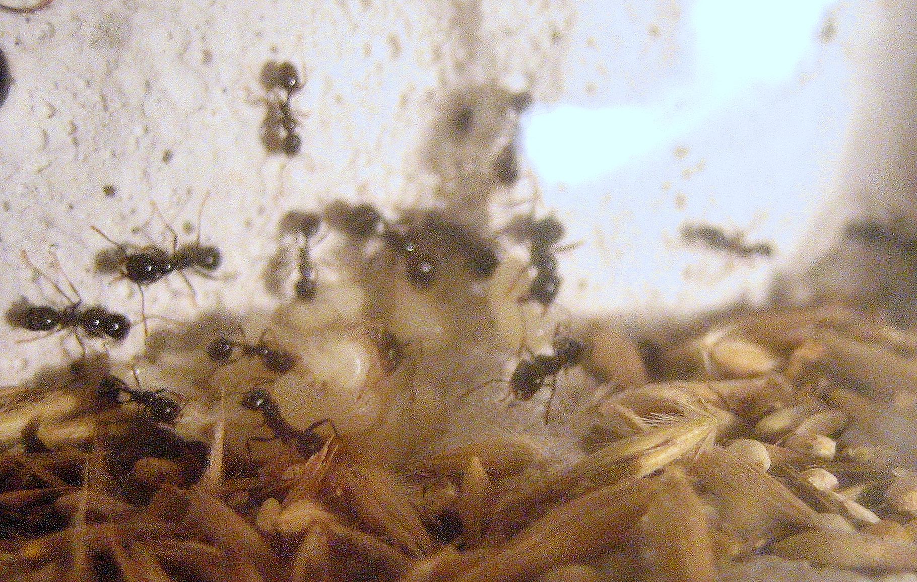 Da die Messor ja mitunter für ihre hervorragenden Kauleistungen bekannt sind, lag der Verdacht nahe, dass sie mit dieser doch verhältnismäßig festen Nahrung zurecht kommen würden.