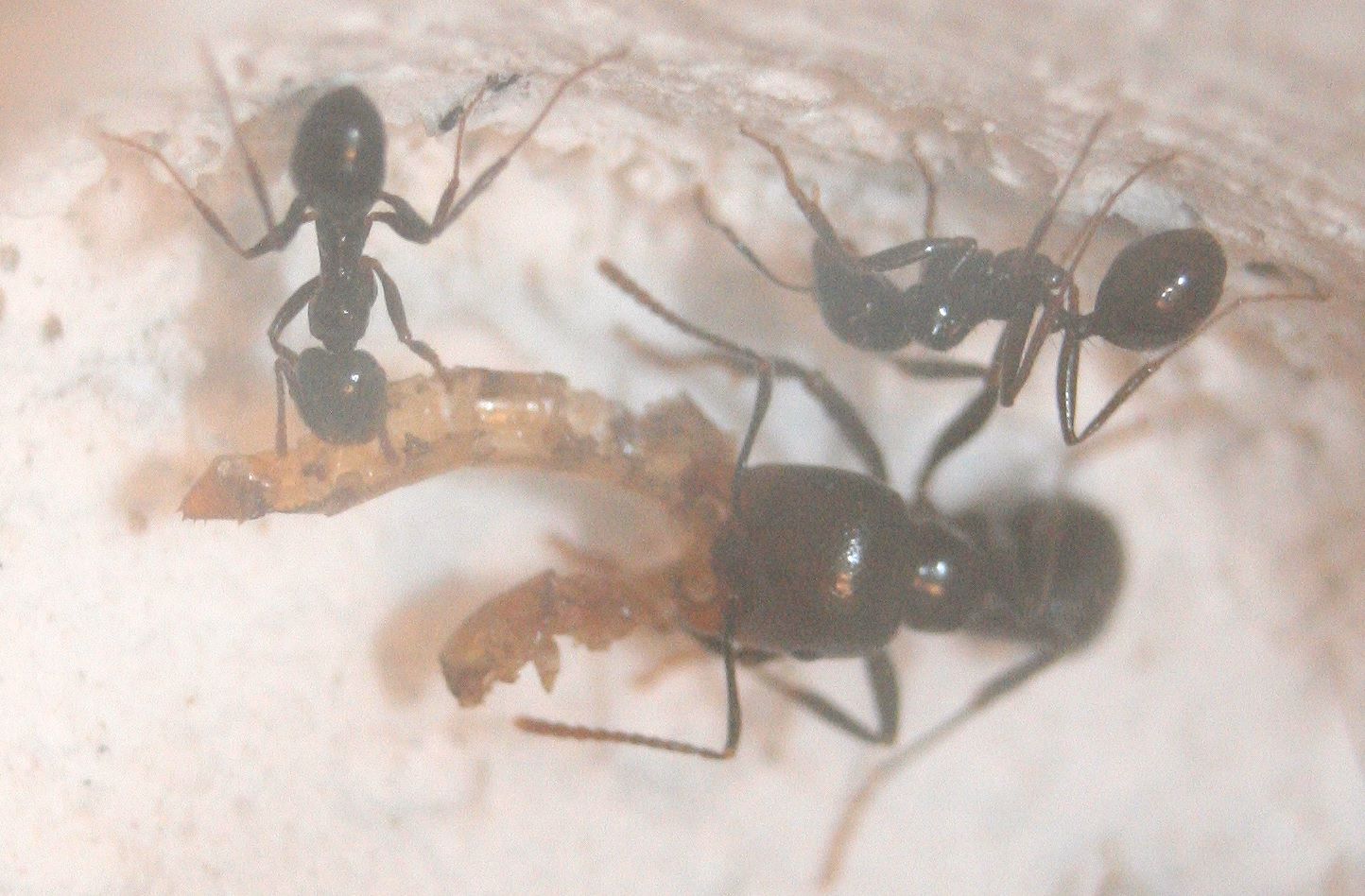 Natürlich kein Großwild wie Pheidole, aber ab und zu muss ich feststellen, dass sie kleinere Mehlwürmer erbeuten.